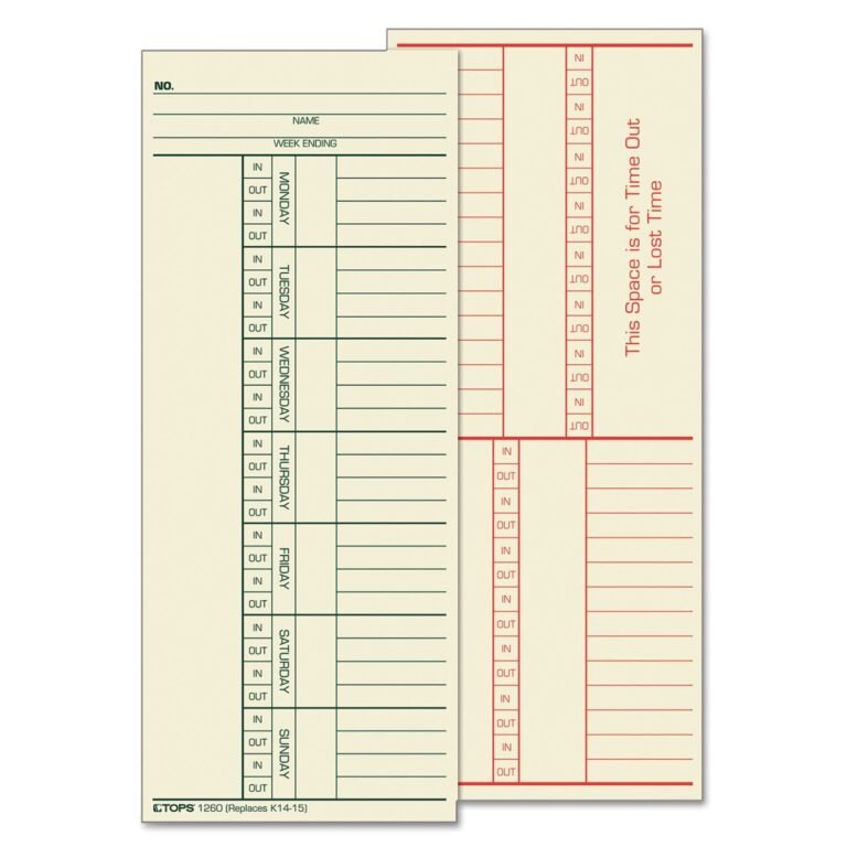TOPS Time Clock Cards, Replacement for CH-107-2, Two Sides, 3.5 x 9, 500/Box (1275)
