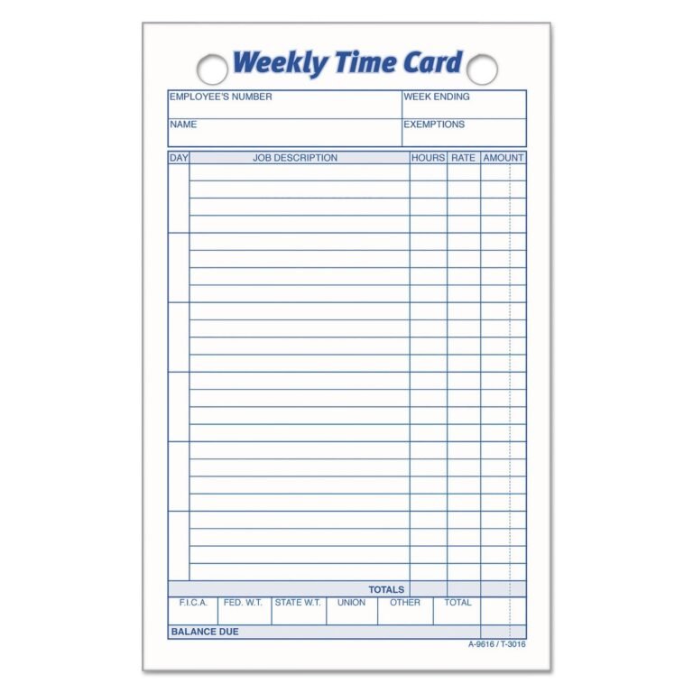 TOPS Weekly Employee Time Cards, One Side, 4.25 x 6.75, 100/Pack (3016)