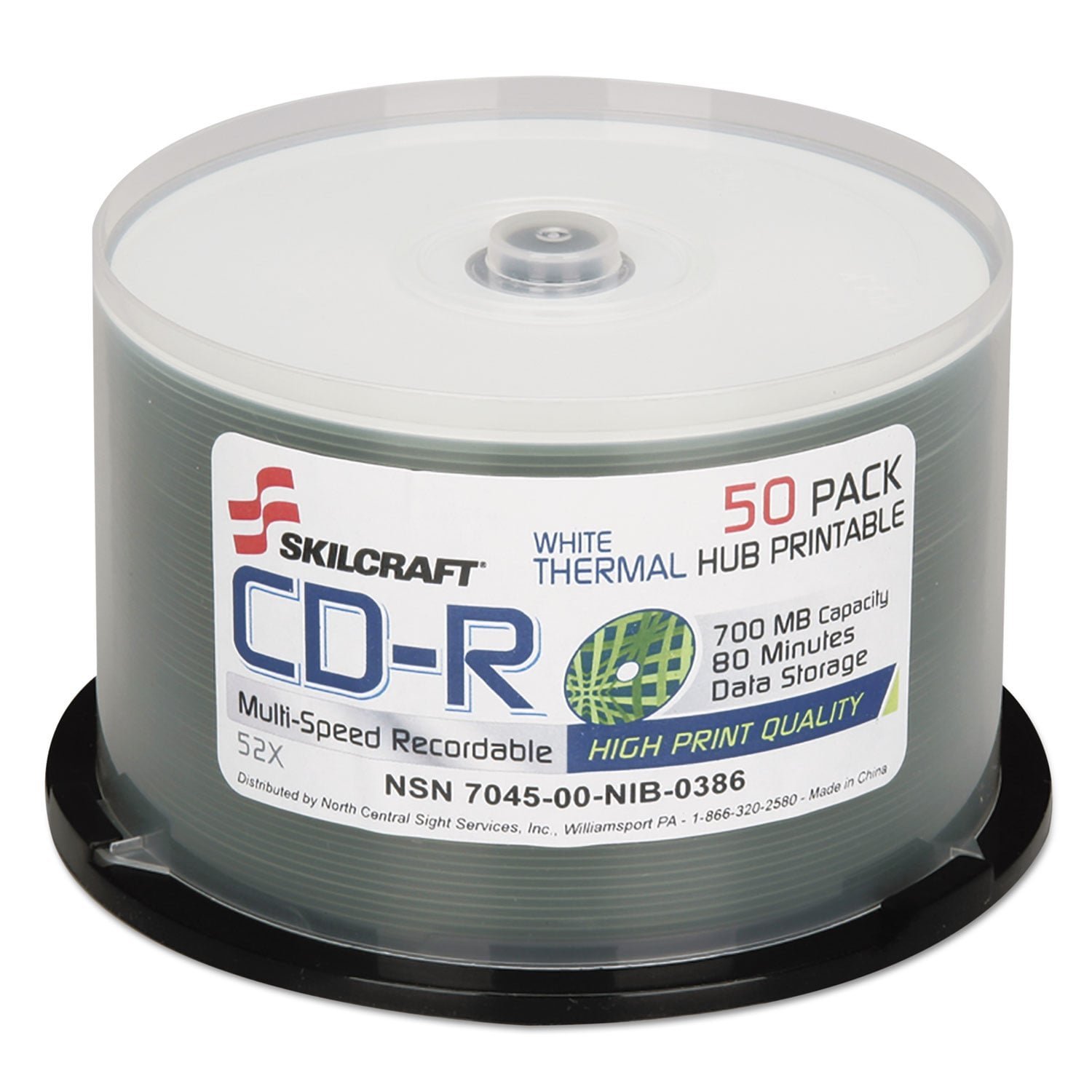 AbilityOne 7045016269521, SKILCRAFT CD-R Recordable Disc, 700 MB/80 min, 52x, Spindle, White, 50/Pack