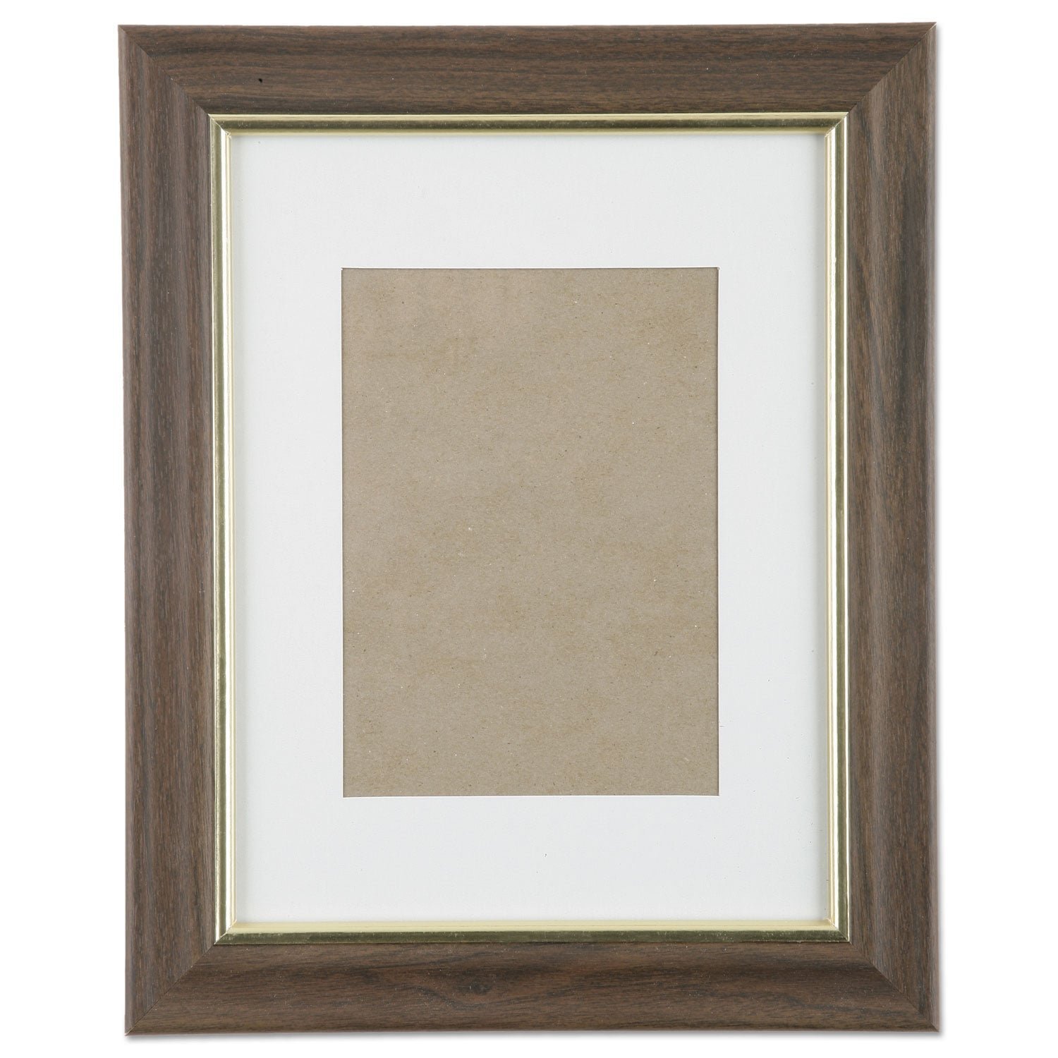 Preserve and protect your certificates/pictures/art with this frame. Traditional ready-made 1 3/8″ walnut vinyl wrapped molding with a raised gold lip. Includes glass, beveled white mat board, back, and staples. Frame Type: Certificate/Document; Photo; Frame Material: Wood; Frame Color: Walnut Vinyl; Color Family: Walnut.