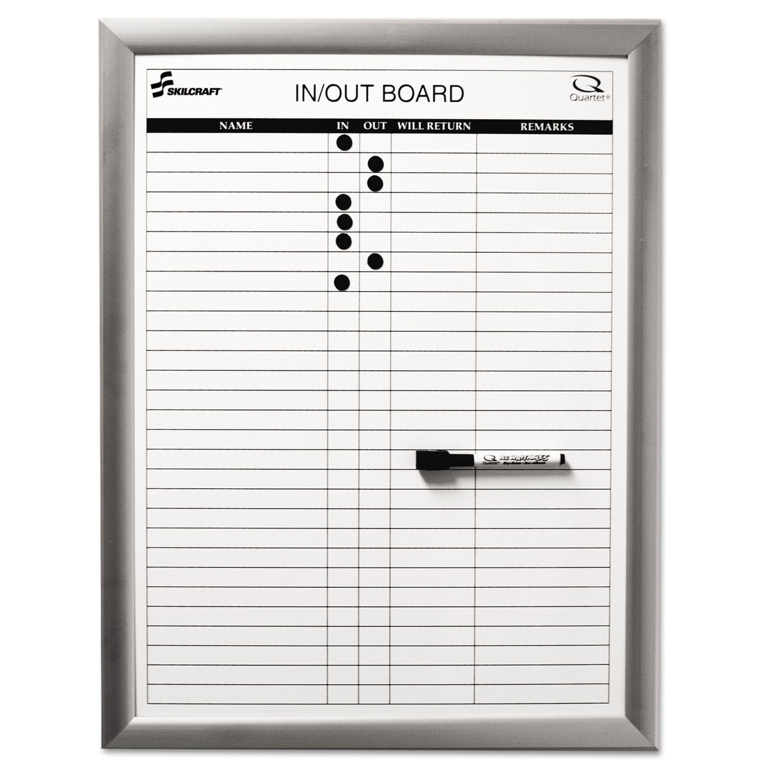 AbilityOne 7110015680403, SKILCRAFT Magnetic In/Out Board, Up to 29 Employees, 18 x 24, White Surface, Anodized Aluminum Frame