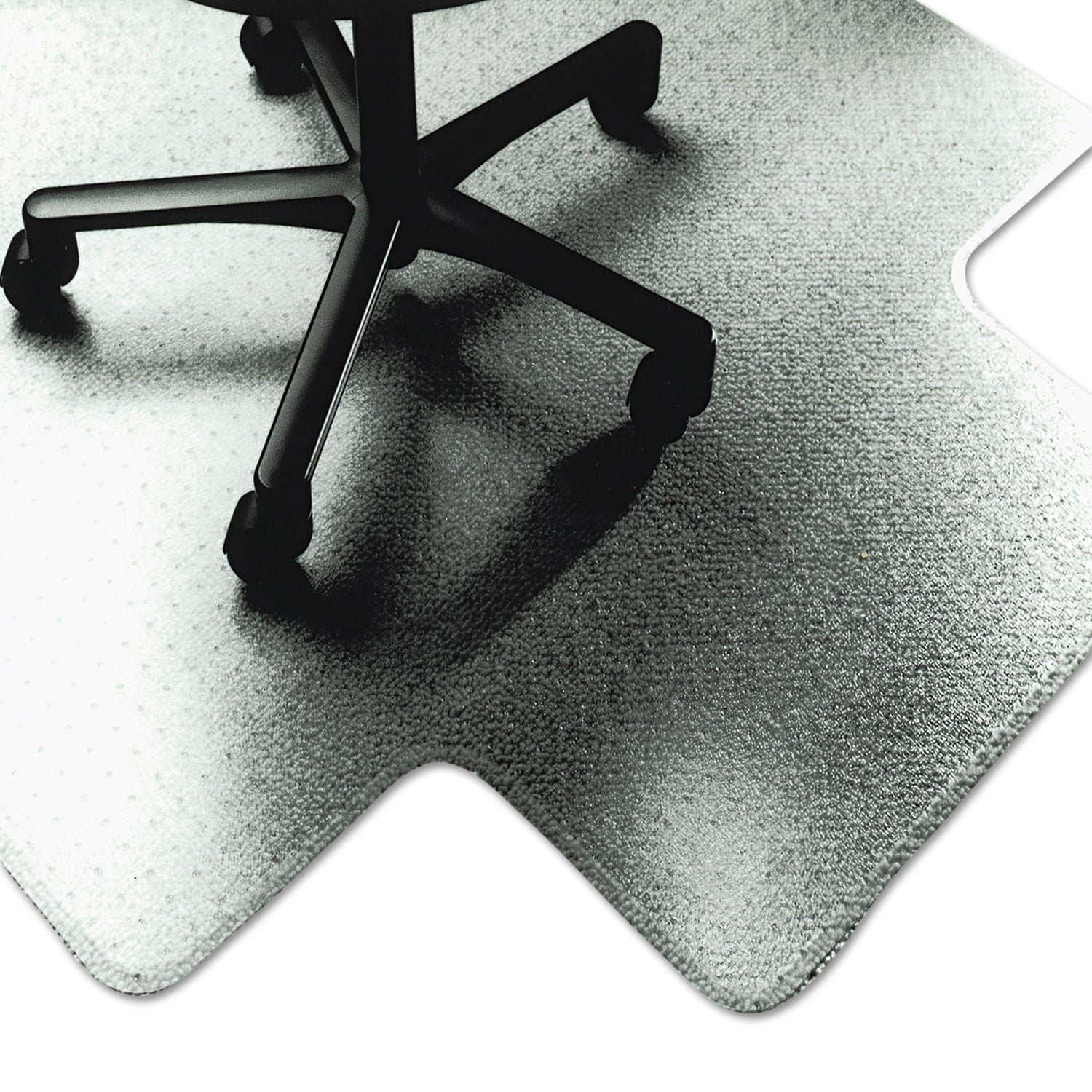 Clear vinyl chair mat with cleats. For Low to Medium Pile Carpet. Mat Type: Chair Mat; Application: Carpeted Floors; Width: 53″; Length: 45″.