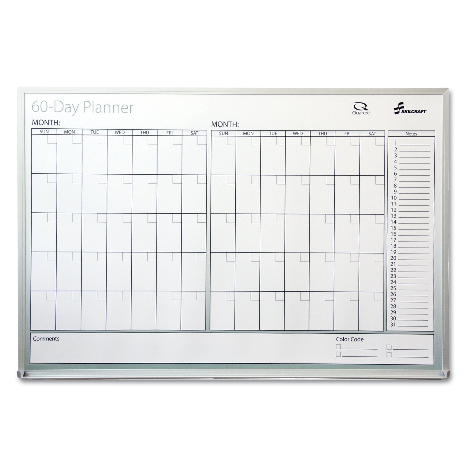 AbilityOne 7520012239897, SKILCRAFT Dry Erase 60-Day Planner, 36 x 24, White Surface, Aluminum Frame