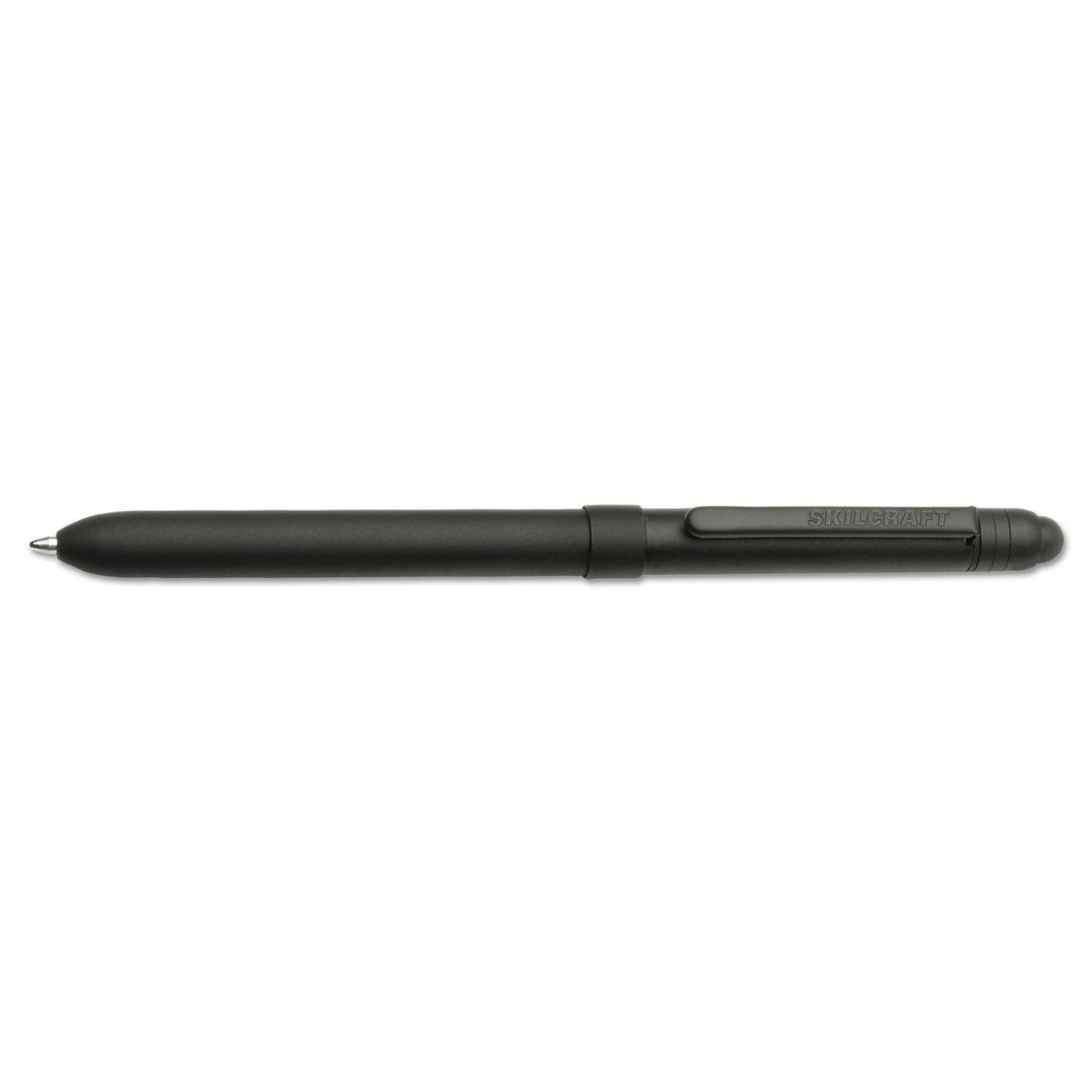 Special slim design fits flight suit and military uniform pockets, this medium-point 3-in-1 twist pen comes with two different colored ink, a 0.5 mm pencil with eraser and Stylus for capacitive touch screens. Featuring non-reflective flat black finish on a metal barrel, this pen is FOD compliant for cockpitand ramp safety. Pen Sub-Brand & Product Family: SKILCRAFT B3 Aviator; Pen Type: Multi-Color Ballpoint Pen/Pencil/Stylus; Pen Style: Retractable; Pen Tip Type: Conical.