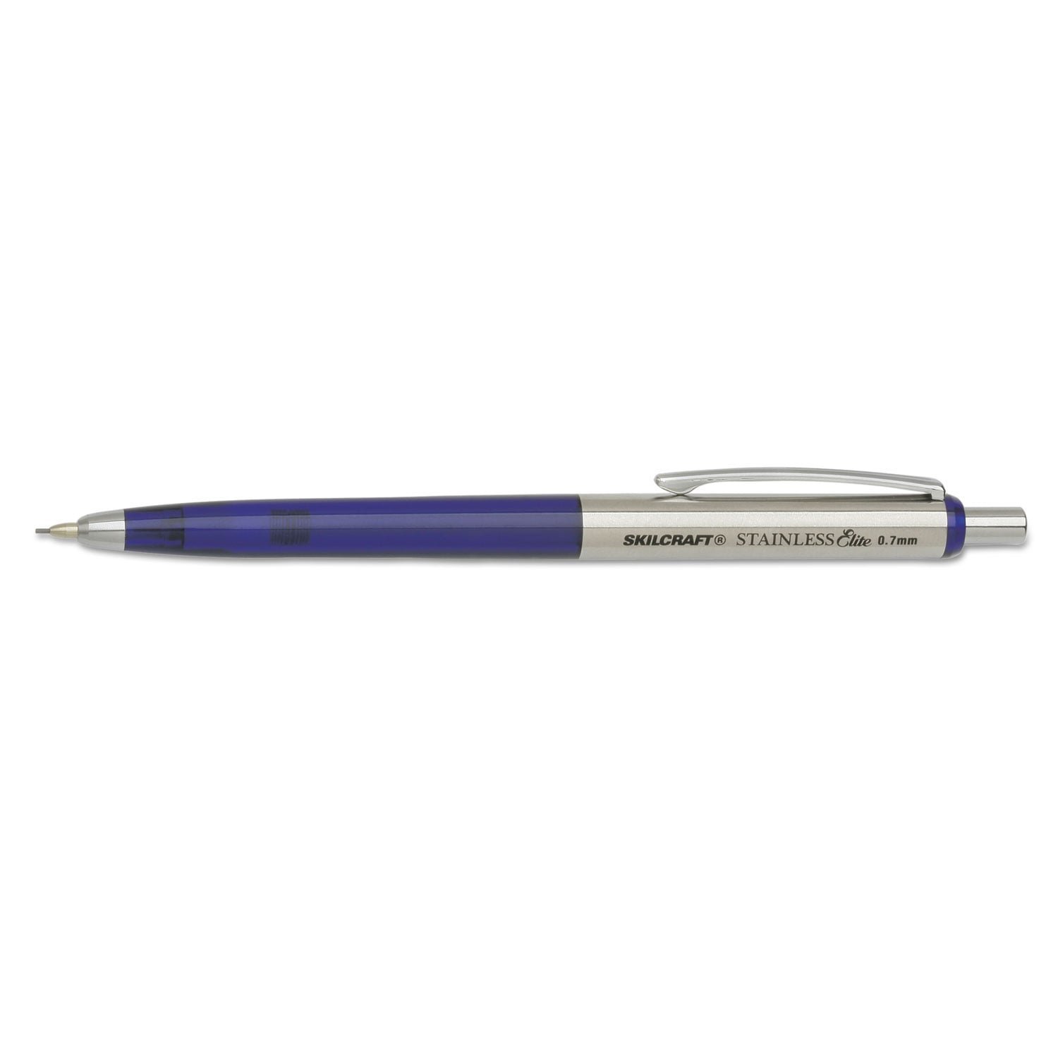AbilityOne 7520016558504, SKILCRAFT Stainless Elite Mechanical Pencil, 0.7 mm, F (#2.5), Black Lead, Blue/Silver Barrel, 3/Pack