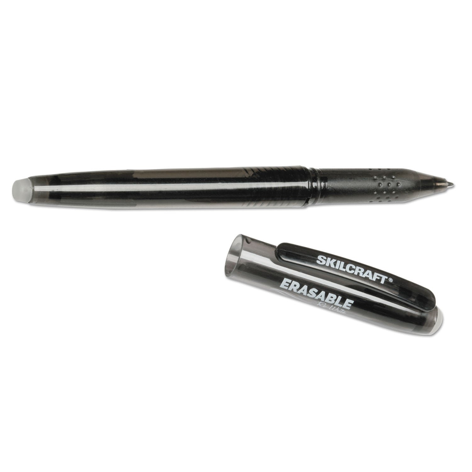 The SKILCRAFT Erasable Re-Write Gel Stick Pen features a special ink that allows you to write, erase and rewrite without damaging documents. Contains gel ink for a smooth writing experience and a specially designed eraser removes ink without a trace. Pen Sub-Brand & Product Family: SKILCRAFT Erasable Re-Write; Pen Type: Gel Pen; Pen Style: Stick; Pen Tip Type: Conical.