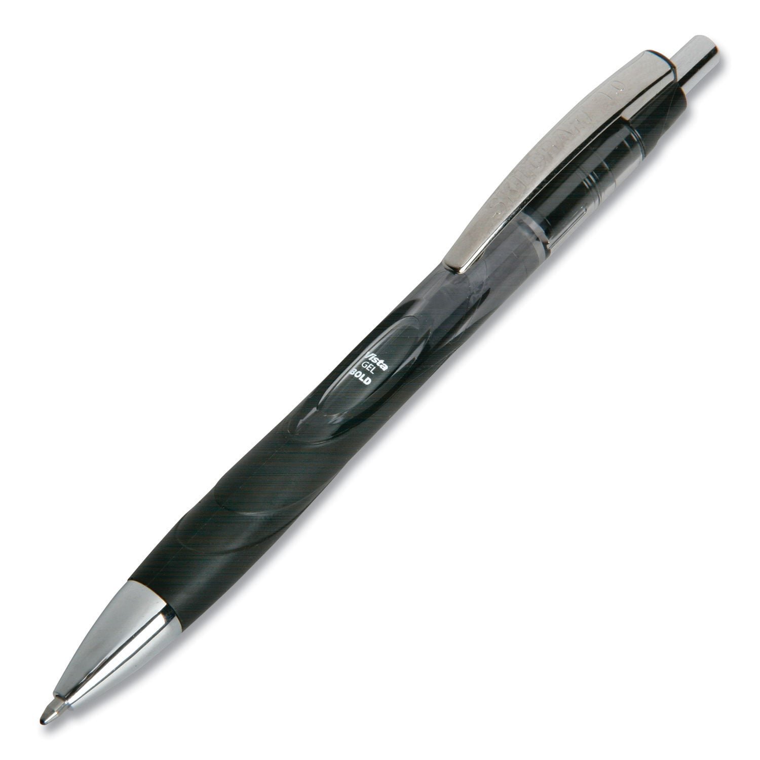 AbilityOne 7520016849424, SKILCRAFT VISTA Gel Pen, Retractable, Bold 1 mm, Black Ink, Smoke/Black/Silver Barrel, Dozen