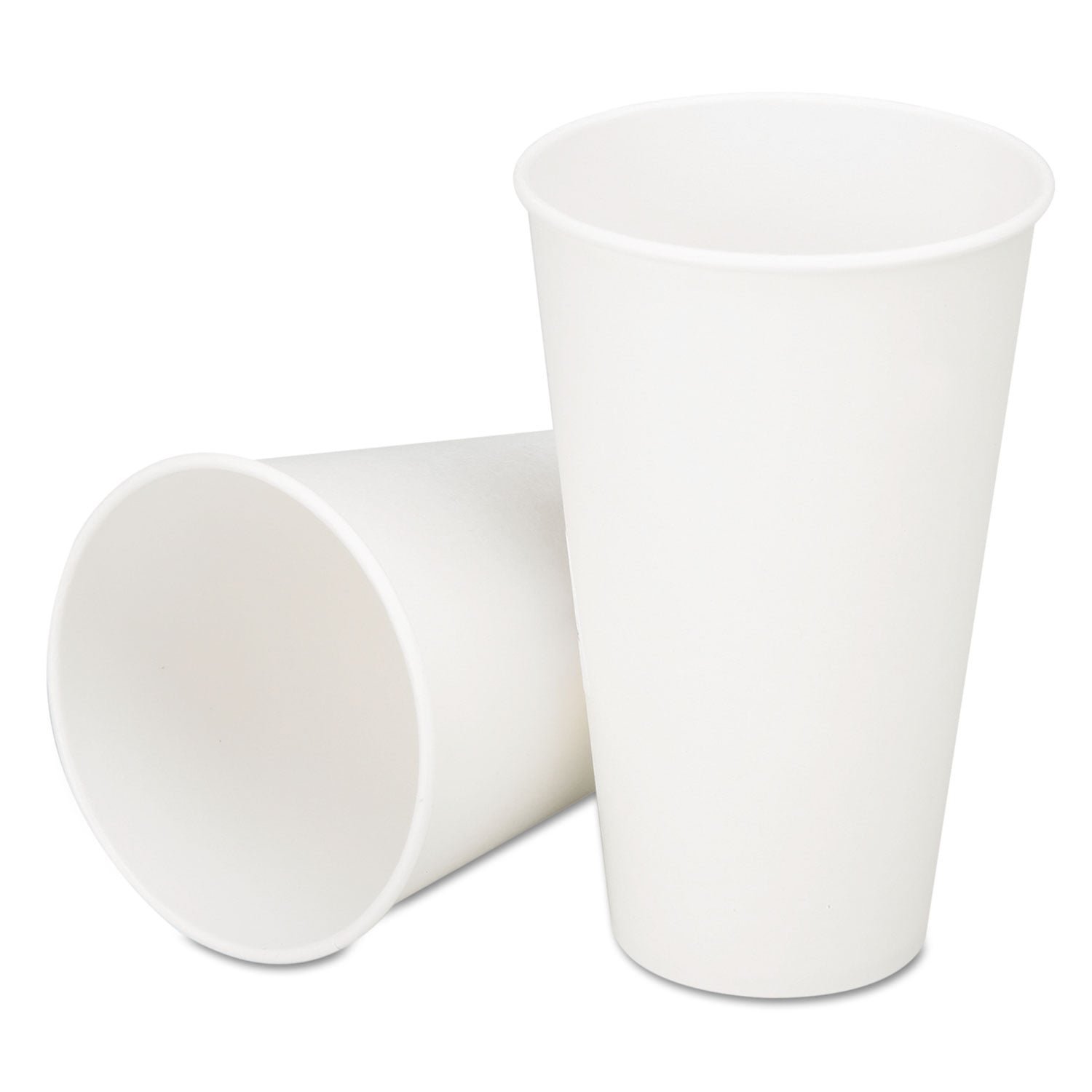 Cup without handles is designed for cold beverages. Features a round tapered design for easy stacking, a plastic coating on the inner surface and a rolled edge for easy handling. Cup is both odorless and leak proof. Cups are elemental chlorine-free (ECF). Meets FDA requirements. Cup Type: Cold; Capacity (Volume): 12 oz; Material(s): Plastic-Coated Paper; Color(s): White.