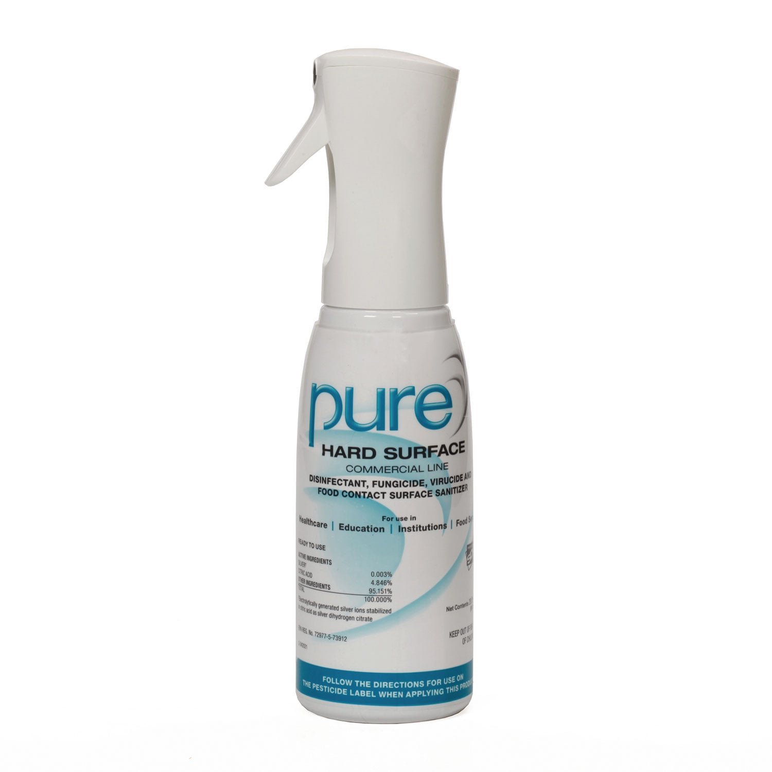PURE Hard Surface Disinfectant empty secondary spray bottle replicates the shape of our 32-ounce spray bottle. This 20-ounce bottle is pre-labeled for easy content identification and designed to convert the 1-gallon bottle contents into a smaller capacity. Dedicated for use with NSN 6840-01-691-1873. Material(s): Plastic; Color(s): White; Interior Volume Capacity: 20 oz; For Use With: PURE Hard Surface Disinfectant NSN 6840-01-691-1873.