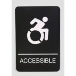 Universally and easily recognizable white graphics. Raised tactile graphics with Grade 2 Braille. Meets Americans with Disabilities Act (ADA) requirements. Includes double-side adhesive tape for mounting to door or wall. Size: 6″ x 9″; Message(s): Accessible; Material(s): Injection Molded Rigid Plastic; Orientation: Vertical.