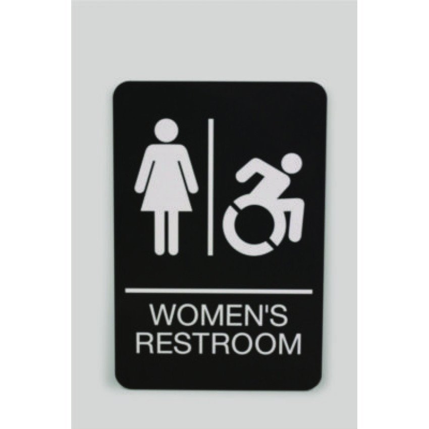 Ada Sign, Women’s Restroom, 6 X 9, Black Face, White Graphics
