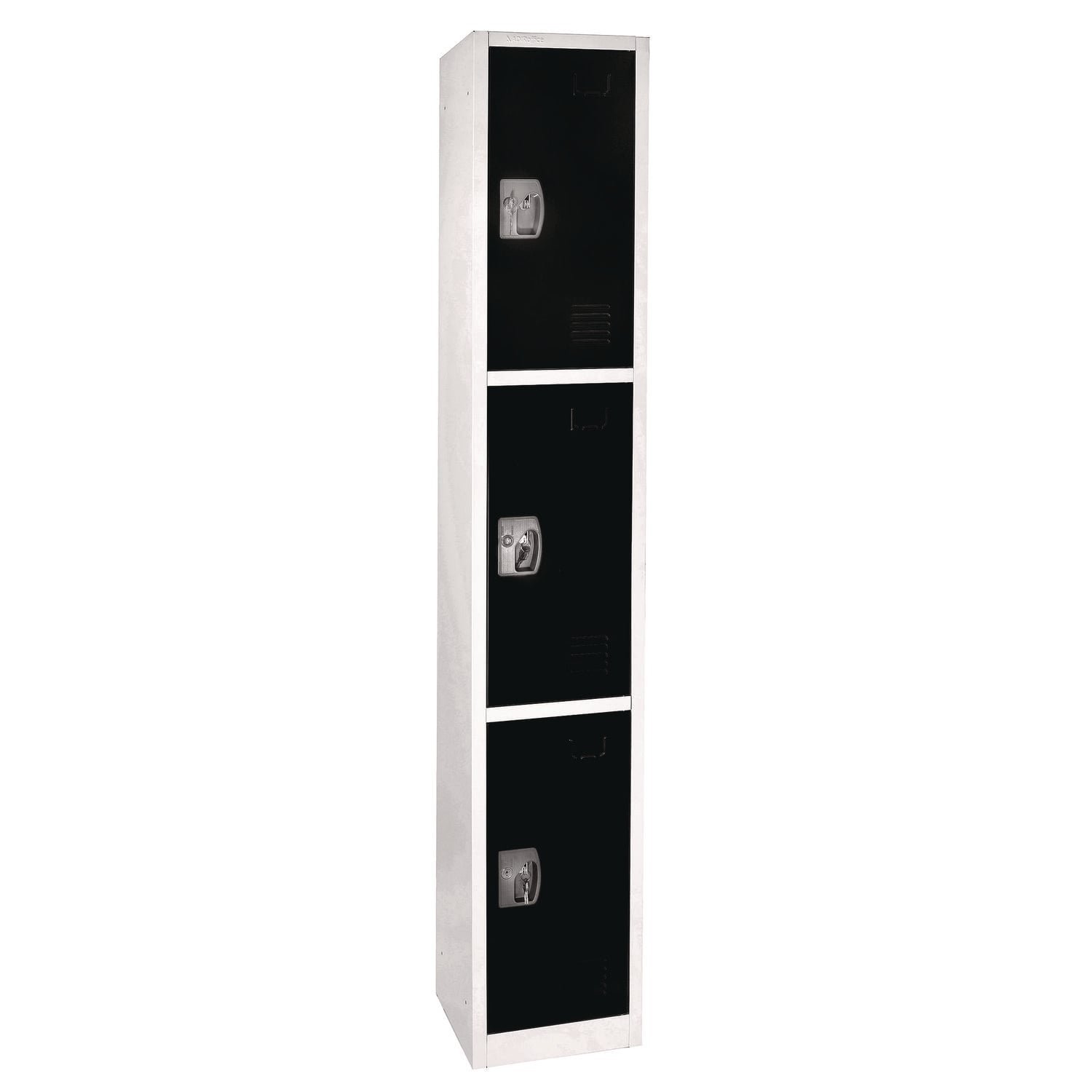 AdirOffice Steel Storage Locker, 3 Compartment, 12 x 12 x 72, Black Body/White Doors (I629203BW)