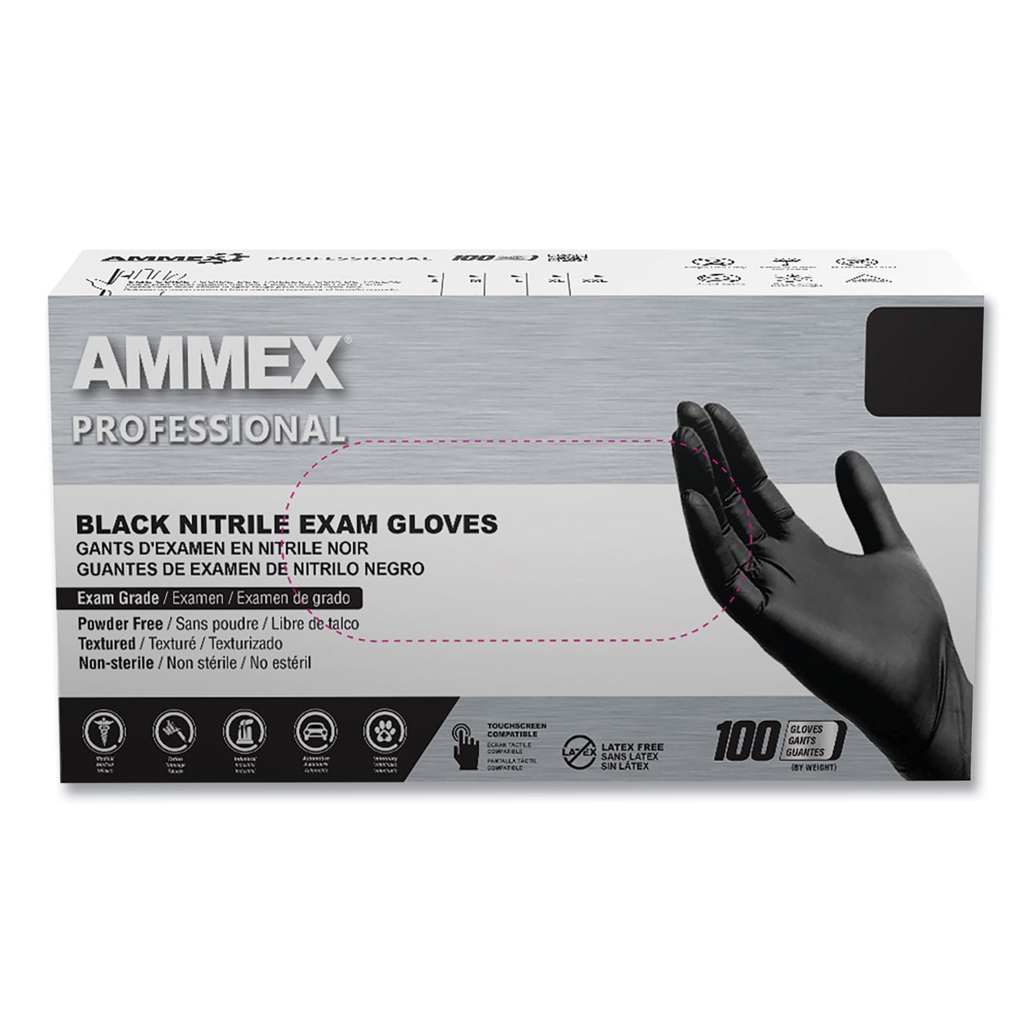 AMMEX Professional Nitrile Exam Gloves, Powder-Free, 3 mil, Small, Black, 100/Box, 10 Boxes/Carton (ABNPF42100)