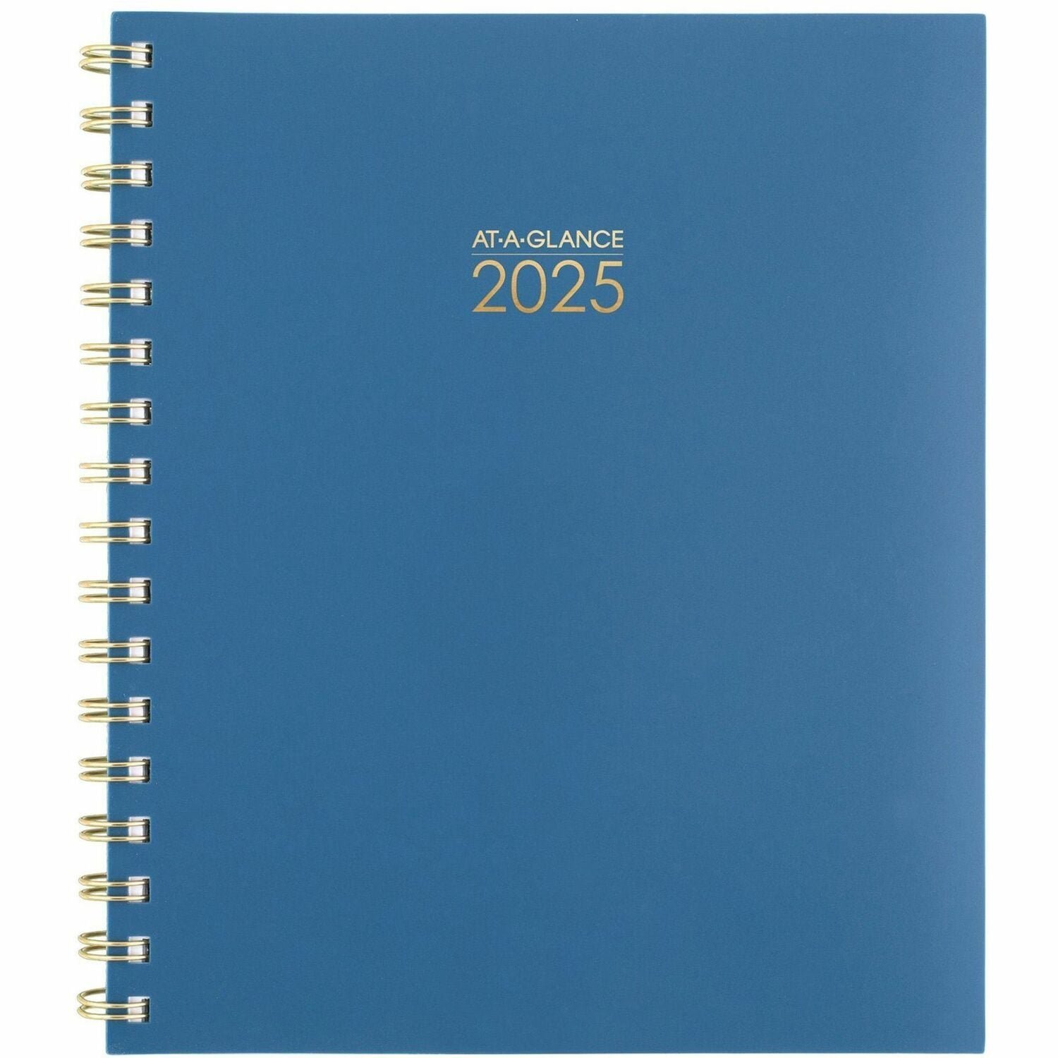 Stay organized using this stylish, wire-bound planner with colorful hardcover and chic rose gold accents. With space to track your goals, plans, achievements and more every day, the Harmony Weekly/Monthly Planner will capture all aspects of your life. Dated planning pages range 13 months from January to January for complete planning through the academic year. High-quality paper delivers superior ink bleed-resistance. Two-page-per-week spread features ruled daily space and sections to list priorities, make checklists, track goals, plan for the future and reflect on “wins of the week.” Tabbed two-page-per-month overviews provide unruled daily blocks and space to list goals, monthly checklists and pursuits and possibilities. Special pages include a holiday listing, three-year reference calendar, future planning pages, contacts, expense tracking and notes. Planner includes repositionable stickers in four different colors for color-coding and a double-sided interior pocket.