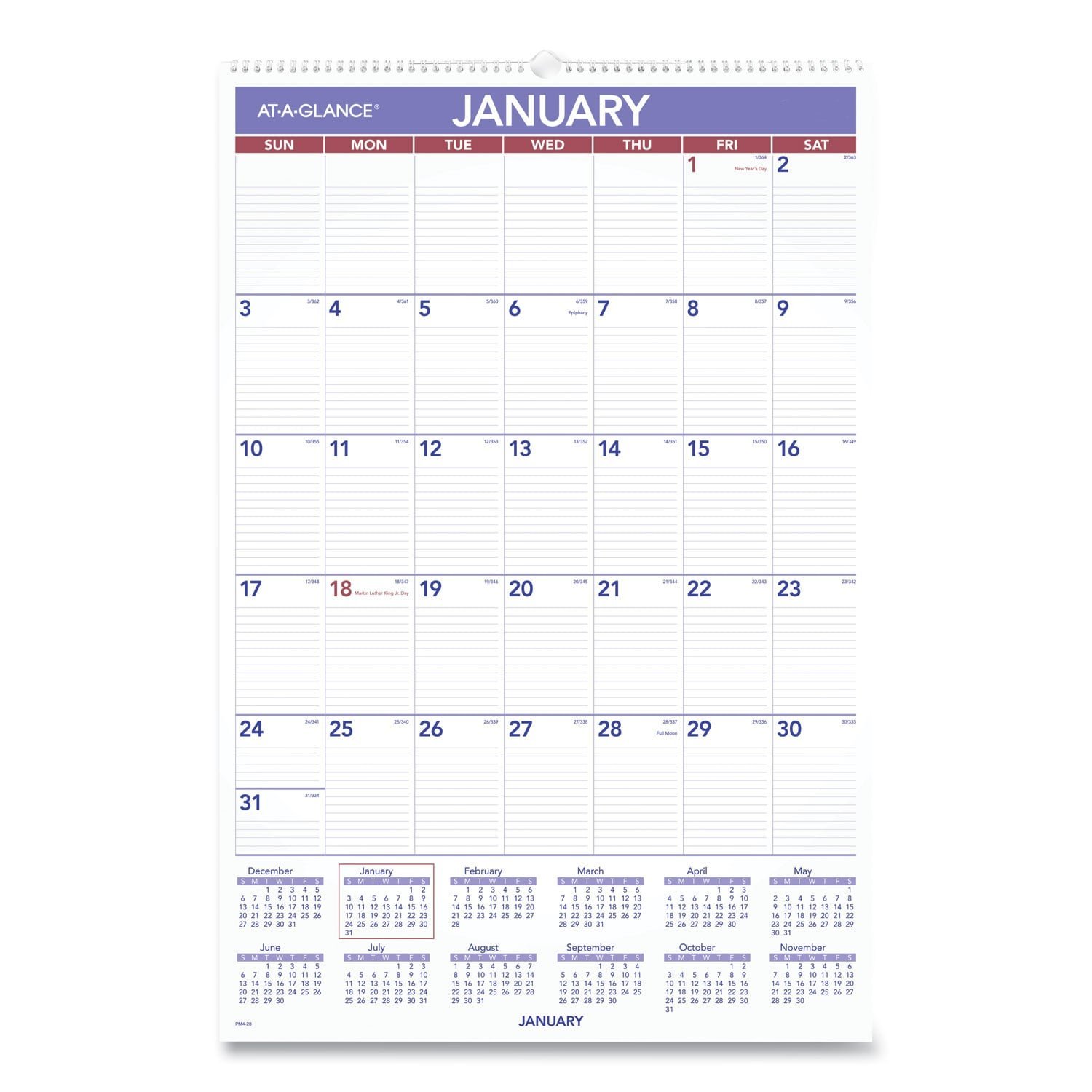 AT-A-GLANCE Monthly Wall Calendar with Ruled Daily Blocks, 20 x 30, White Sheets, 12-Month (Jan to Dec): 2026 (PM428)