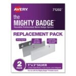 Avery The Mighty Badge Name Badge Holders, Horizontal, 3 x 1, Silver, 2/Pack Silver – 2 / Pack (71202)