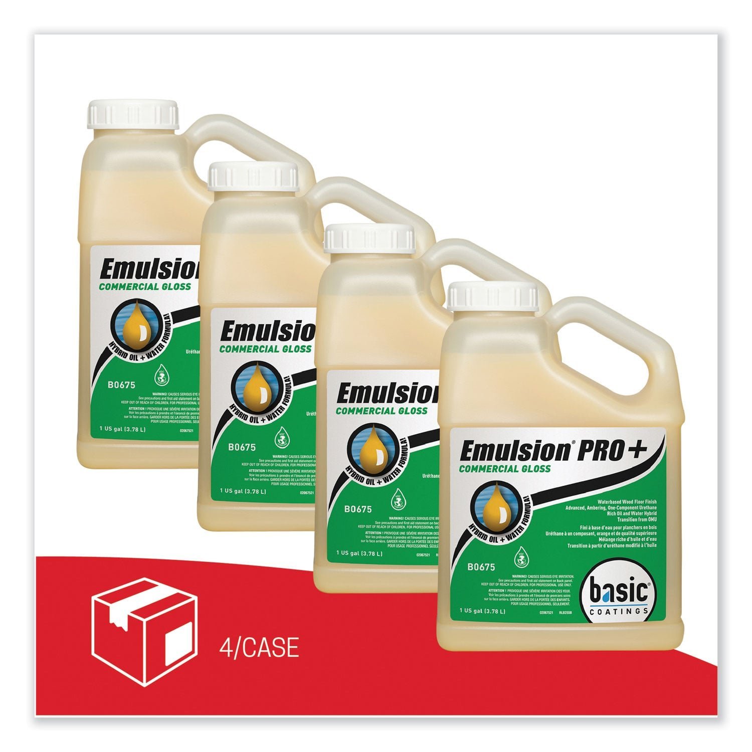 Emulsion PRO+ is a one-component, commercial grade, self-leveling sealer and finish. This product contains an oxidative, crosslinking polyurethane (OCP). Ideal for use in residential, commercial, or sport wood flooring applications. Ambering quality, enhances the beauty of wood. This product also contains contains a low amount of volatile solvents, which allows it to be Low-VOC. The low-odor formulation is also non-flammable. Application: Floor Finish; Applicable Material: Wood; Chemical Compound: Urethane Polymer; Scent: Mild.