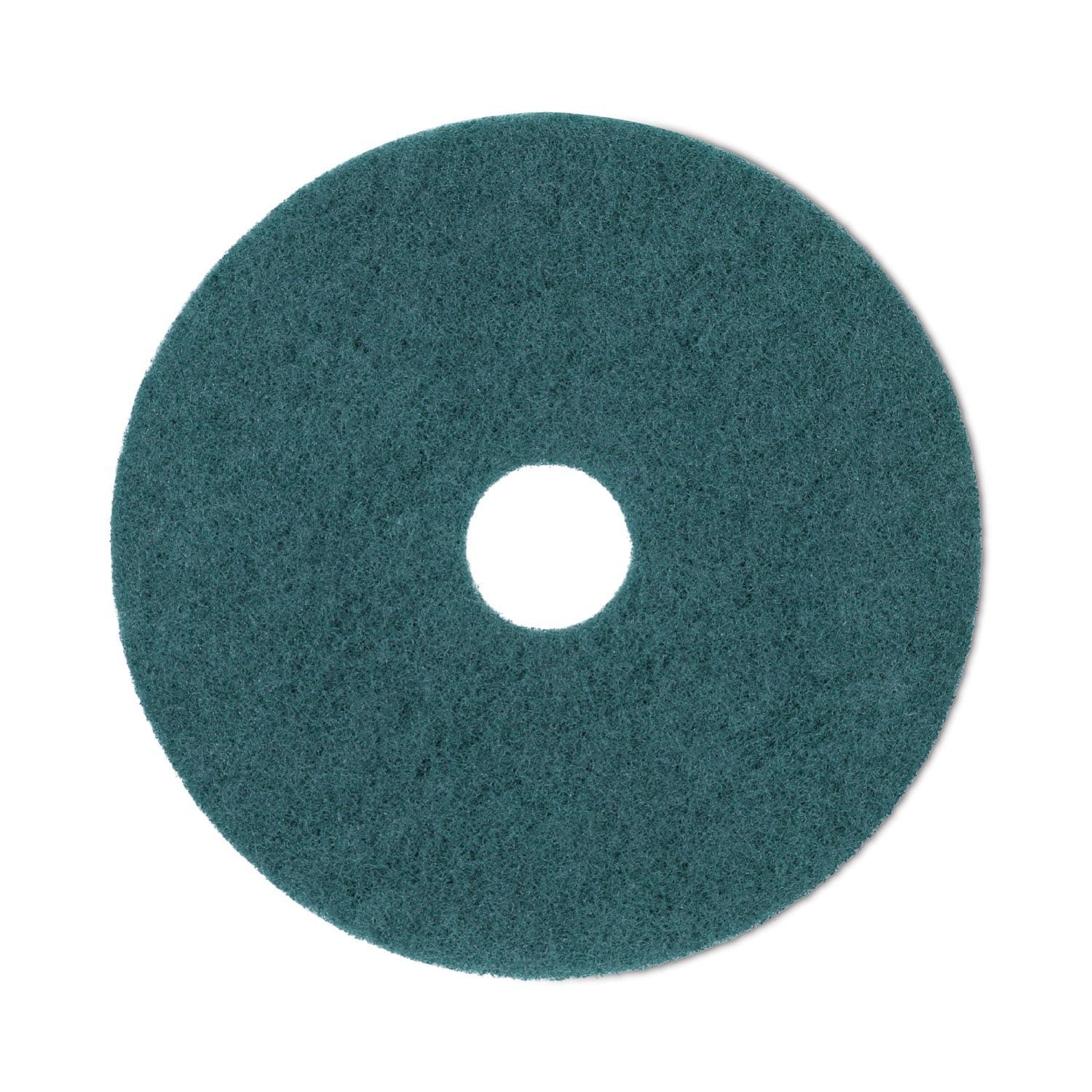 Extra heavy-duty scrubbing pad attaches to a rotary machine to remove dirt, spills, and scuffs. Easily scrub floors by mounting the pad onto the machine and let the powerful scrubbing pad go to work, removing heavy traffic and build-up with ease. The surface is cleaned, removed of debris, and ready for recoating if needed. For use with Rotary Machine Speed of 175 to 600 RPM. Color-coded for easy job identification. Application: Scrubbing; Diameter: 19″; Color(s): Green; Color Family: Green.