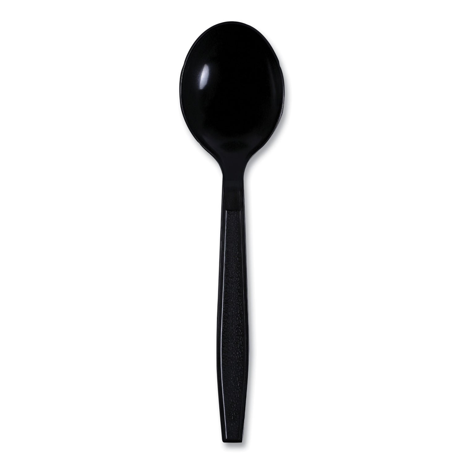 A great option for virtually any dining environment, heavyweight, wrapped cutlery items offer quick event set-up or packing for to-go meals. Individually packaged for convenience and to ensure utensils remain sanitary, even after handling. The high-quality utensils have the versatility to be used with nearly any cuisine, making them an ideal fit for takeout, concession stands, cafeterias, offices, and special events. Utensils Type: Soup Spoon; Material(s): Polypropylene; Color(s): Black; Grade: Heavyweight.