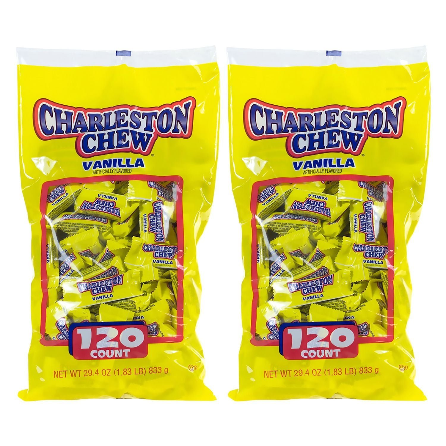Chewy, flavored nougat wrapped in a rich, chocolaty coating have made Charleston Chew an American favorite since its launch by the Fox-Cross Candy Company in 1922. Share the Charleston Chew Experience with Charleston Chew Small Bars, scaled-down versions of the original Charleston Chew. With 120 individually wrapped in this bulk candy box, they are the perfect treat for filling the pinata at your kids next birthday party or the candy buffet at your upcoming celebration. Plus, enjoy Charleston Chews as is, or throw them in the freezer for a whole different experience! Food Type: Candy; Flavor: Chocolate; Capacity (Weight): 0.25 oz; Sugar Free: No.
