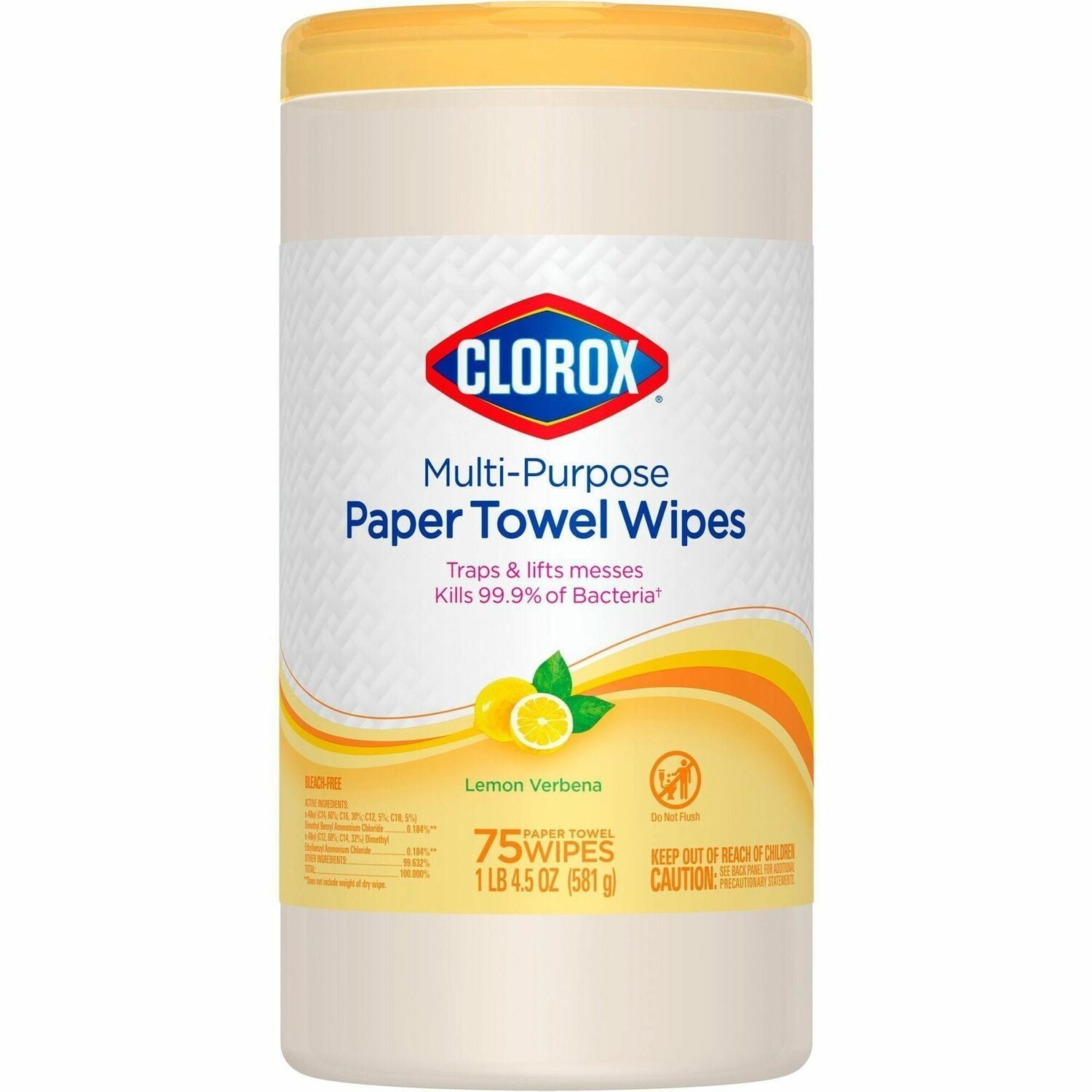 Clorox Multipurpose Paper Towel Wipes Lemon Verbena Scent – Pre-moistened, Textured, Residue-free – White – 75 Tub – 1 Each (32578)