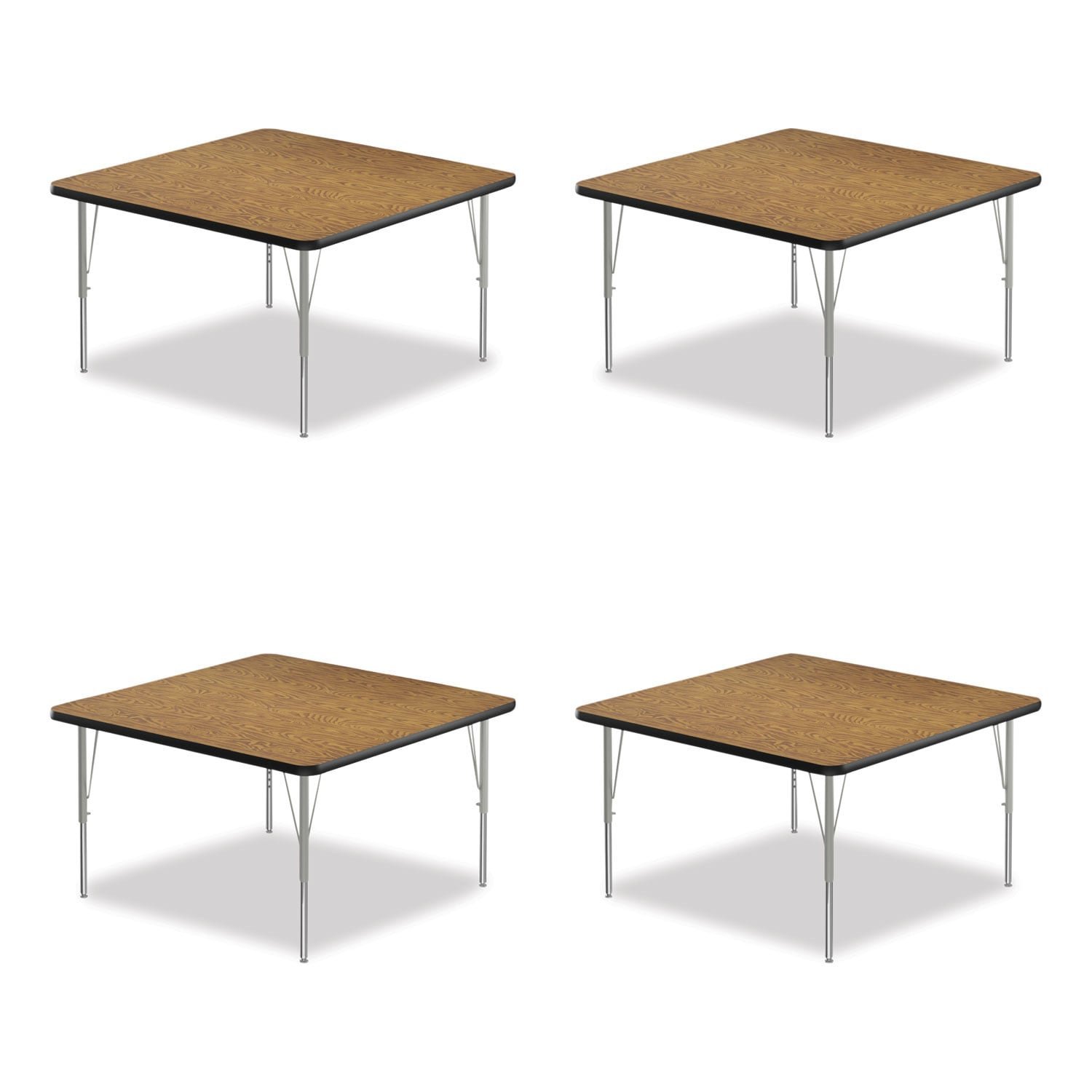 Correll Adjustable Activity Tables, Square, 48″ x 48″ x 19″ to 29″, Medium Oak Top, Silver Legs, 4/Pallet (4848TF06954P)