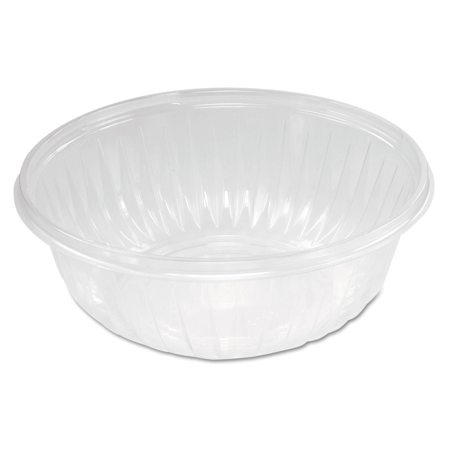 Clear bowls allow you to easily identify the product within. Elegant design on the bowls creates an upscale image. These bowls are also stackable, saving storage space. They’re versatile, good for holding many different kinds of items including bakery and deli goods and produce. Food Container Type: Carryout; Material(s): Plastic; Capacity (Volume): 32 oz; Color(s): Clear.