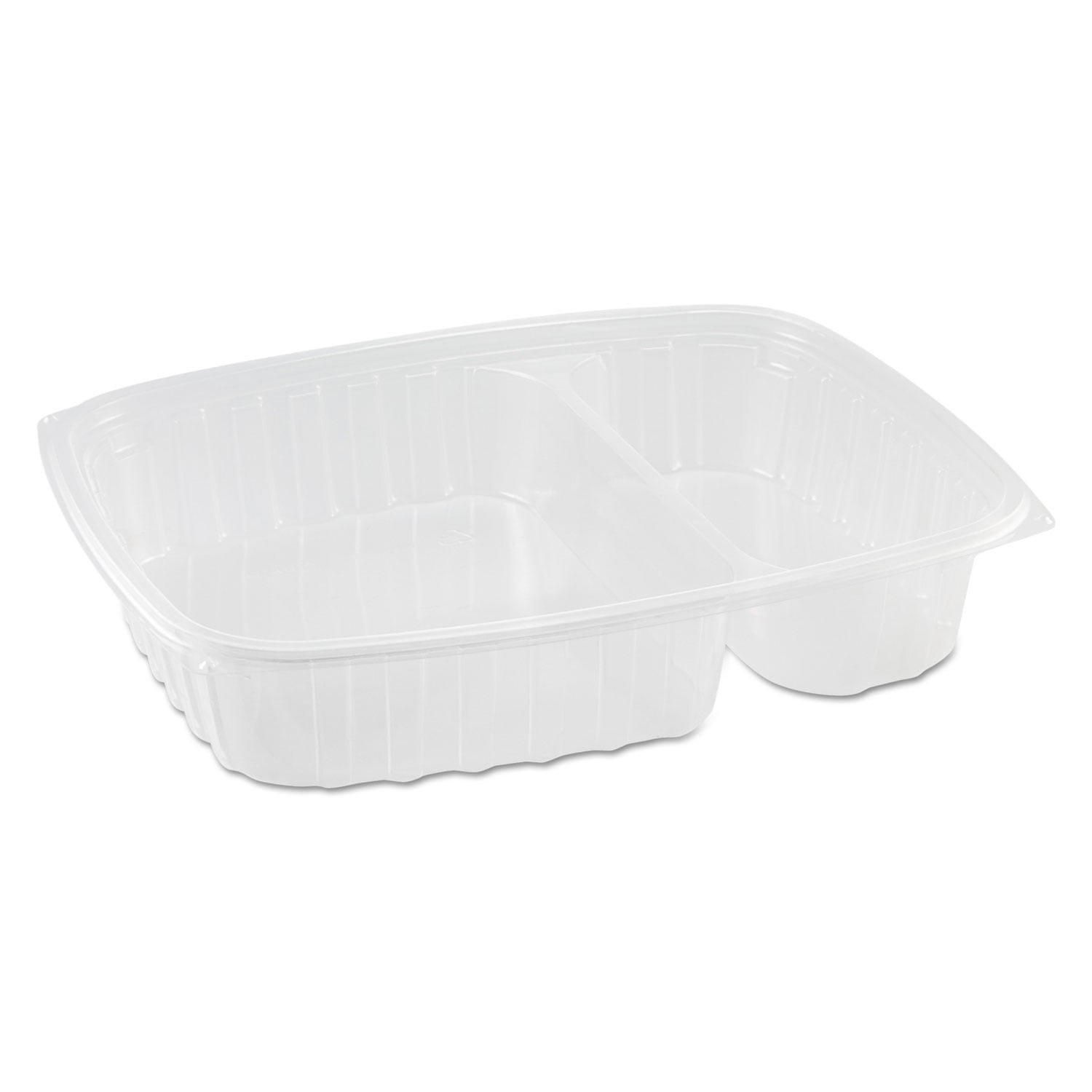 Clear hinged containers offer crystal clarity for excellent product visibility. Dual bar locks ensure a secure closure, even after multiple openings, while sidewall ribbing and chamfered corners increase strength and durability. Lightweight, crush-resistant and stackable. Serve multiple applications. Food Container Type: Hinged Lid Container; Material(s): PET – Polyethylene Terephthalate; Food Container Material Type: Plastic; Color(s): Clear.