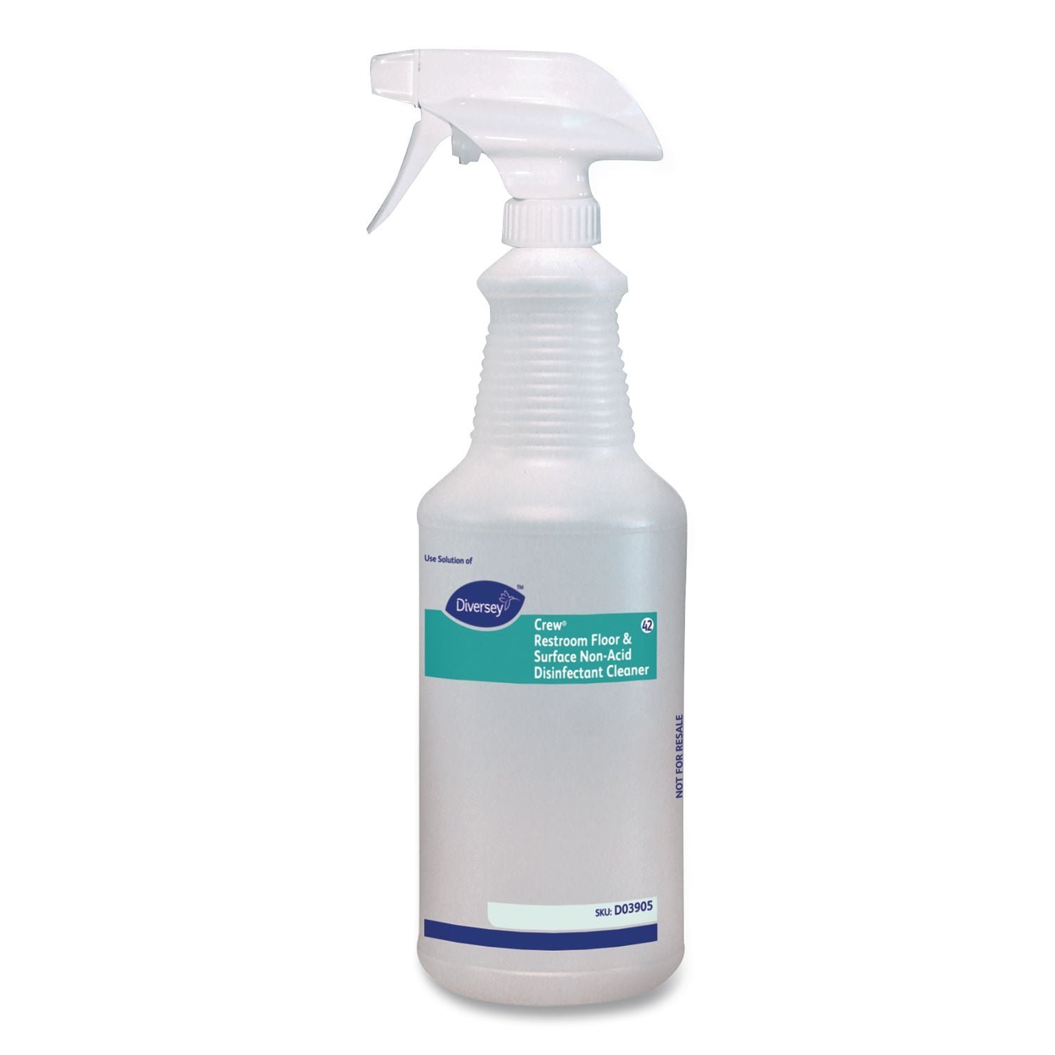 Diversey Crew Restroom Floor and Surface Non-Acid Disinfectant Cleaner Empty Spray Bottle, 32 oz, Clear (D03905)