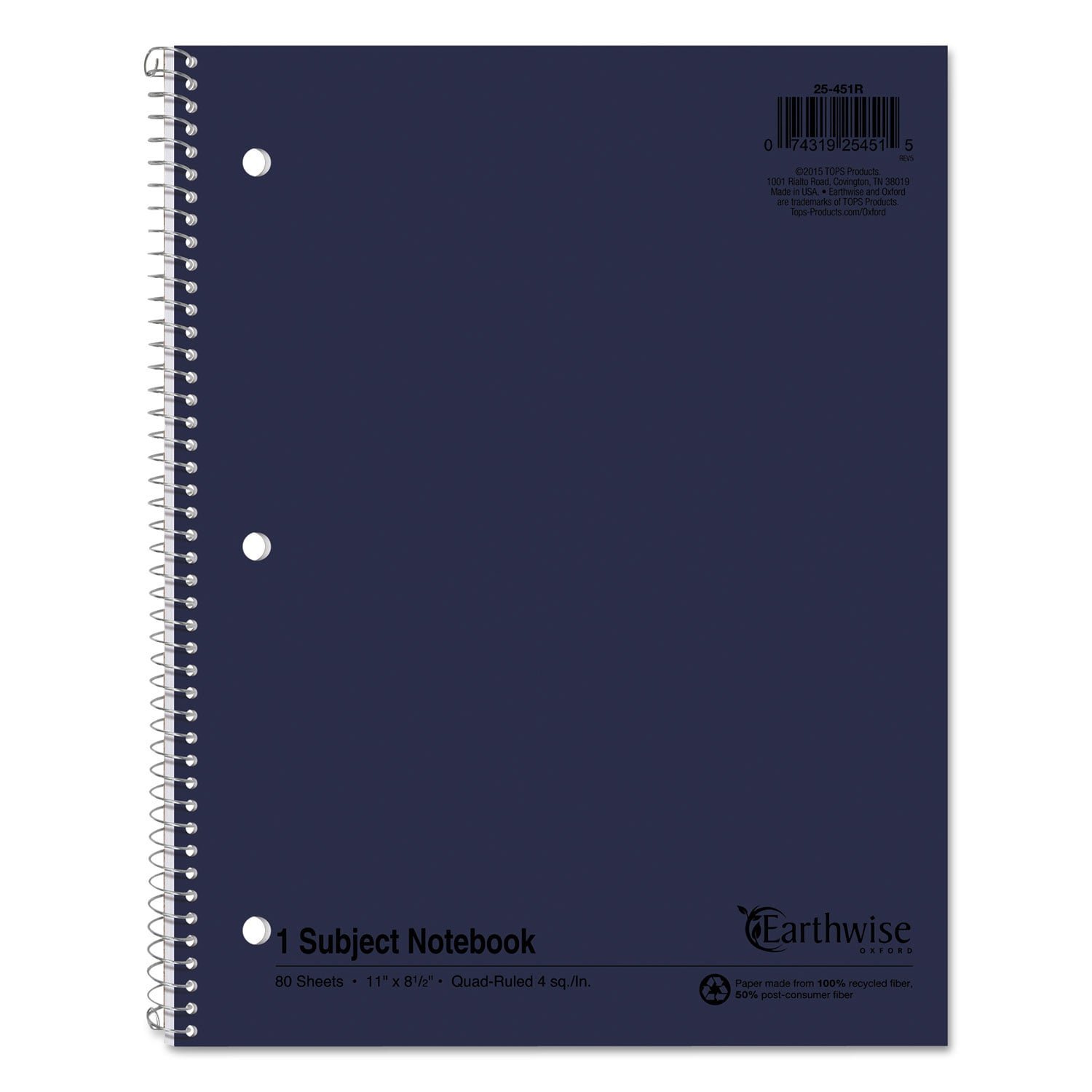 Earthwise by Oxford Recycled Single Subject Notebook, Quadrille Rule (4 sq/in), Randomly Assorted Cover, (80) 11 x 8.5 Sheets (25451)