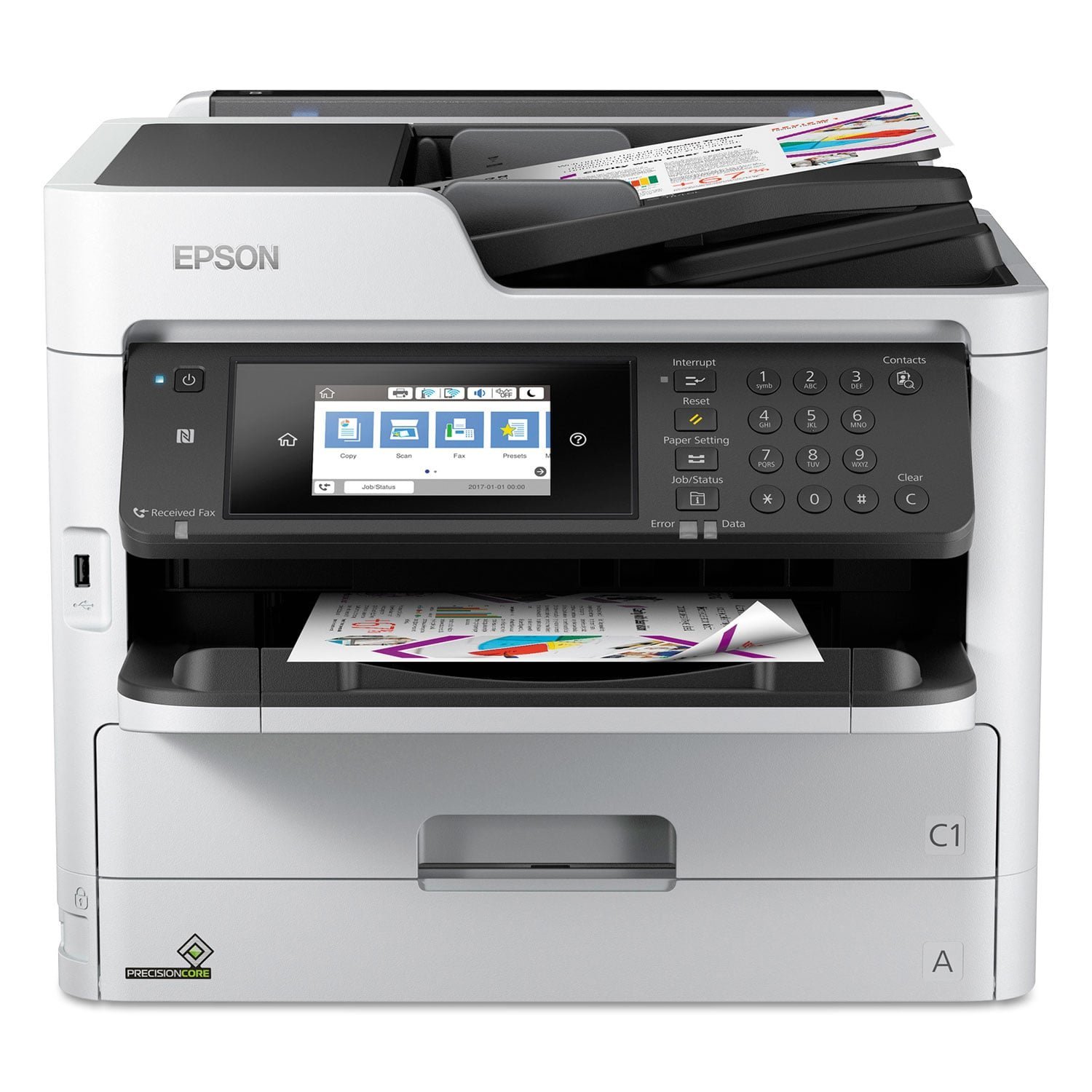 Powered by PrecisionCore printing technology, the WorkForce Pro WF-C5790 features the next generation of inkjet printing technology. This compact workhorse also includes an innovative replaceable ink pack system to minimize your interventions. Lower total printing costs vs. color laser. The WF-C5790 offers print speeds of 24 ISO ppm (black/color), a fast first page out with no warmup time, plus fast scan speeds. With a 50-page auto document feeder and auto two-sided printing, copying, scanning and faxing, it’s ideal for busy workgroups. The WF-C5790 includes PCL and PostScript 3 support, plus integration with enterprise applications. Machine Functions: Copy; Fax; Print; Scan; Printer Type: Inkjet; Maximum Print Speed (Black): 34 ppm; Maximum Print Speed (Color): 34 ppm.
