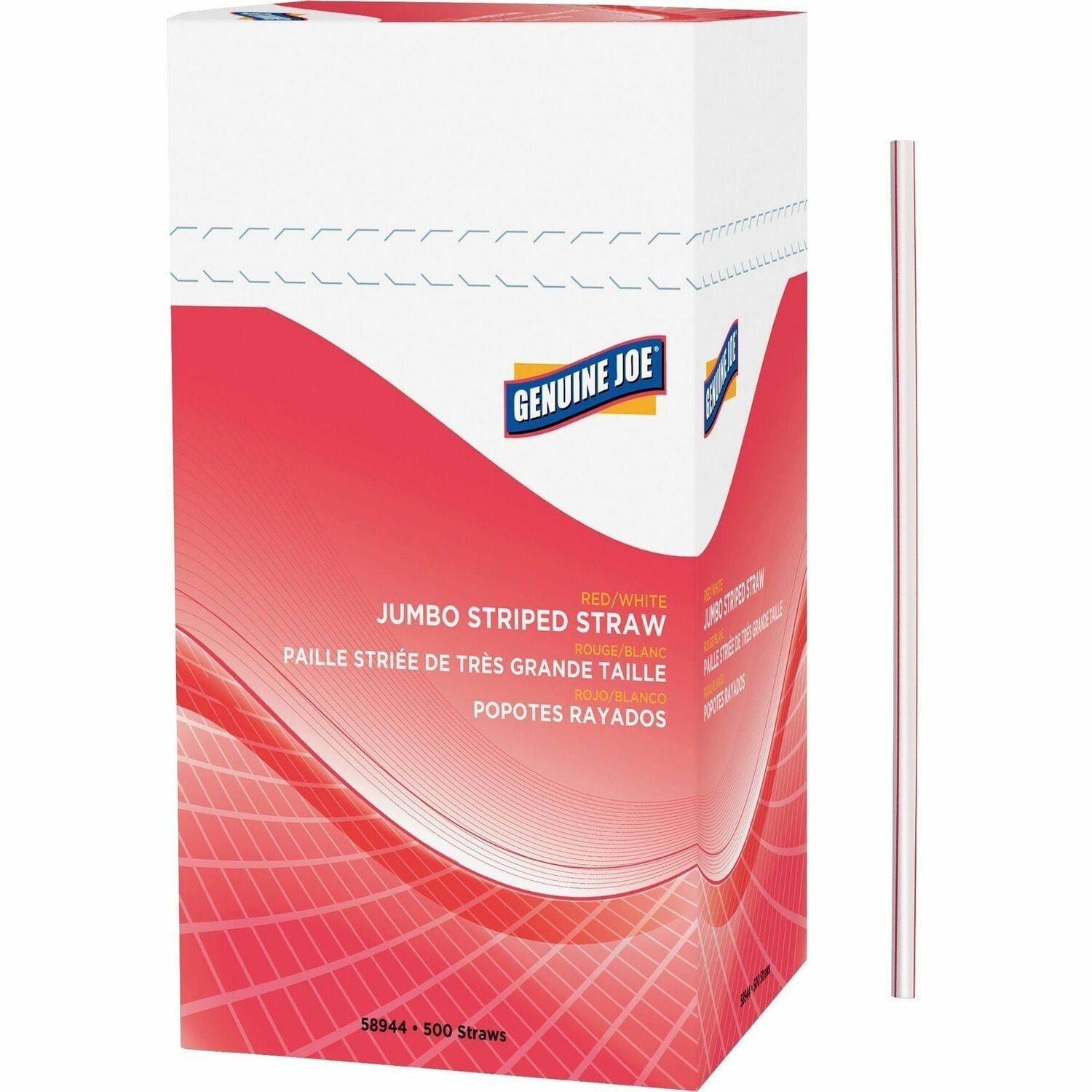 Genuine Joe Jumbo Striped Straws 7.8″ Length – Plastic – Red, White – 500 / Box (GJO58944)