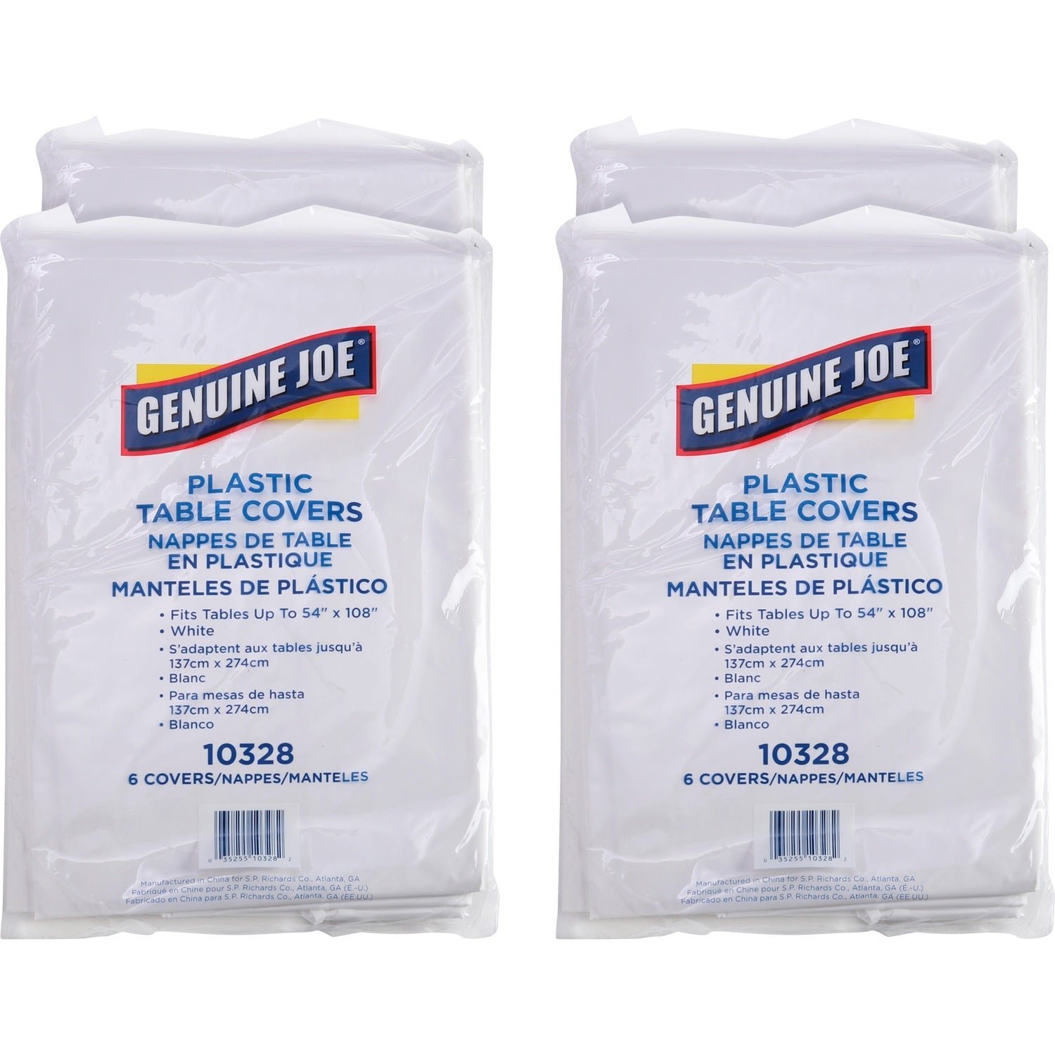 Genuine Joe Plastic Rectangular Table Covers 108″ Length x 54″ Width – Plastic – White – 6/Pack – 4 / Carton (GJO10328CT)