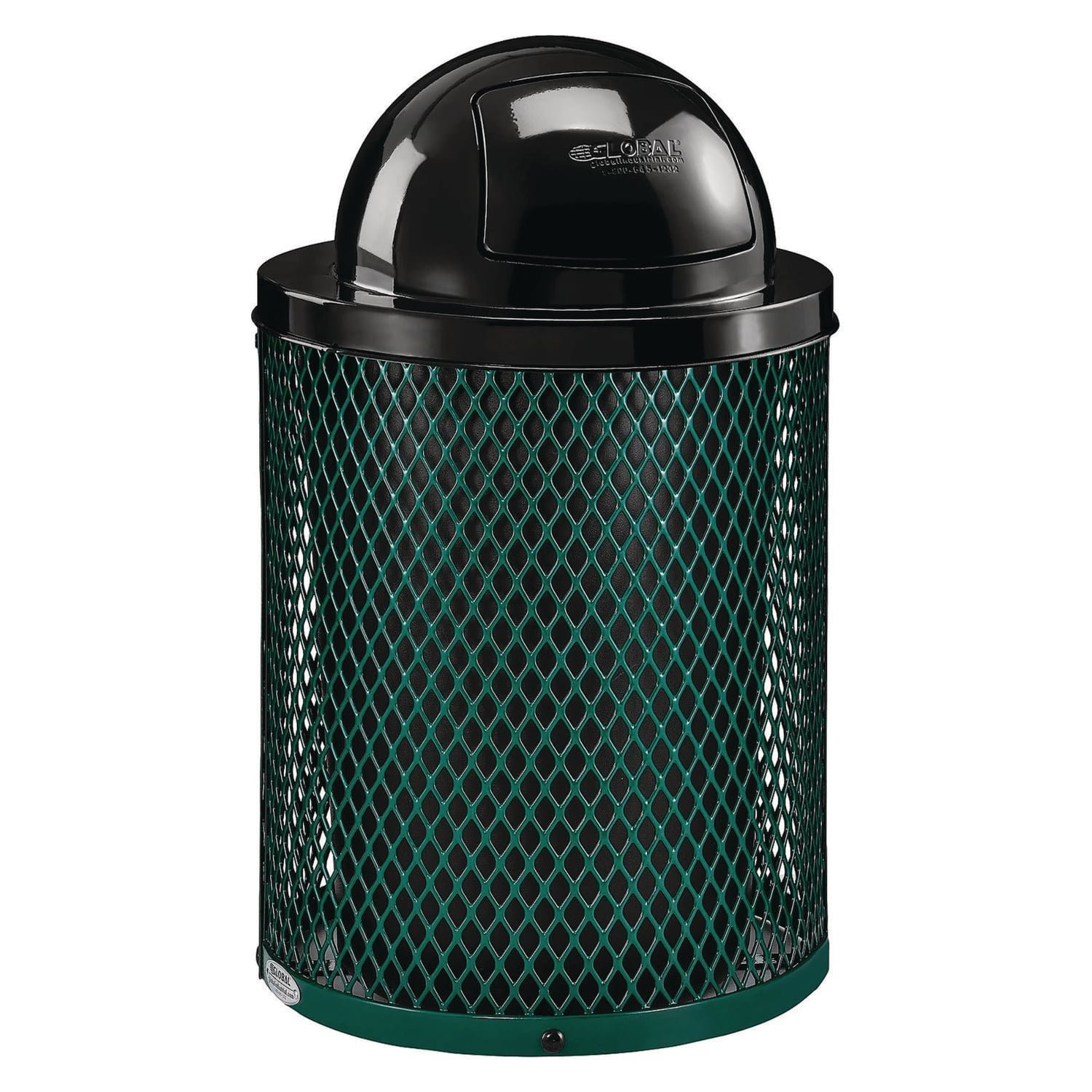 Global Industrial Outdoor Diamond Steel Trash Can, 36 gal, Dome Lid, Green (261948GN)