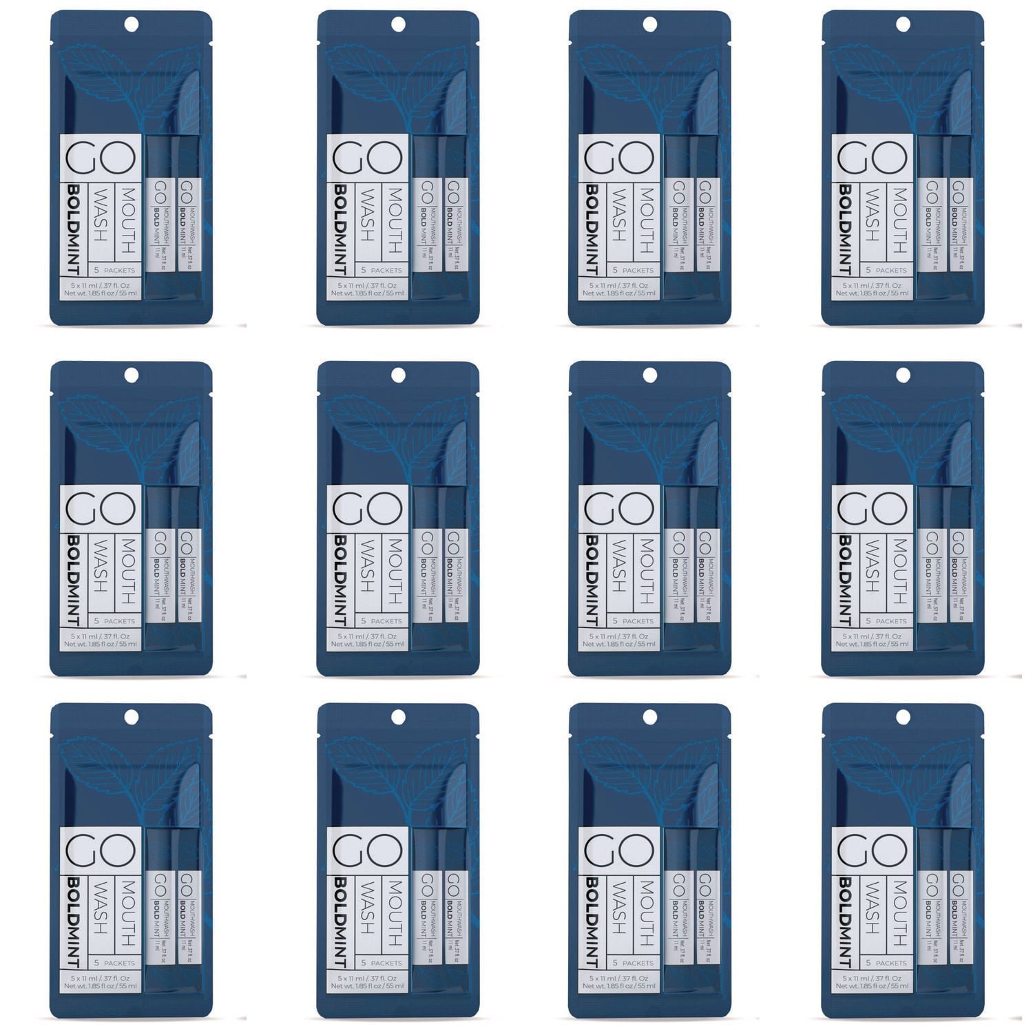 Go Mouthwash Individual Mouthwash Packets, Bold Mint Flavor, 0.37 Packet, 5/Pack, 12 Packs/Box (MW05BOLD)