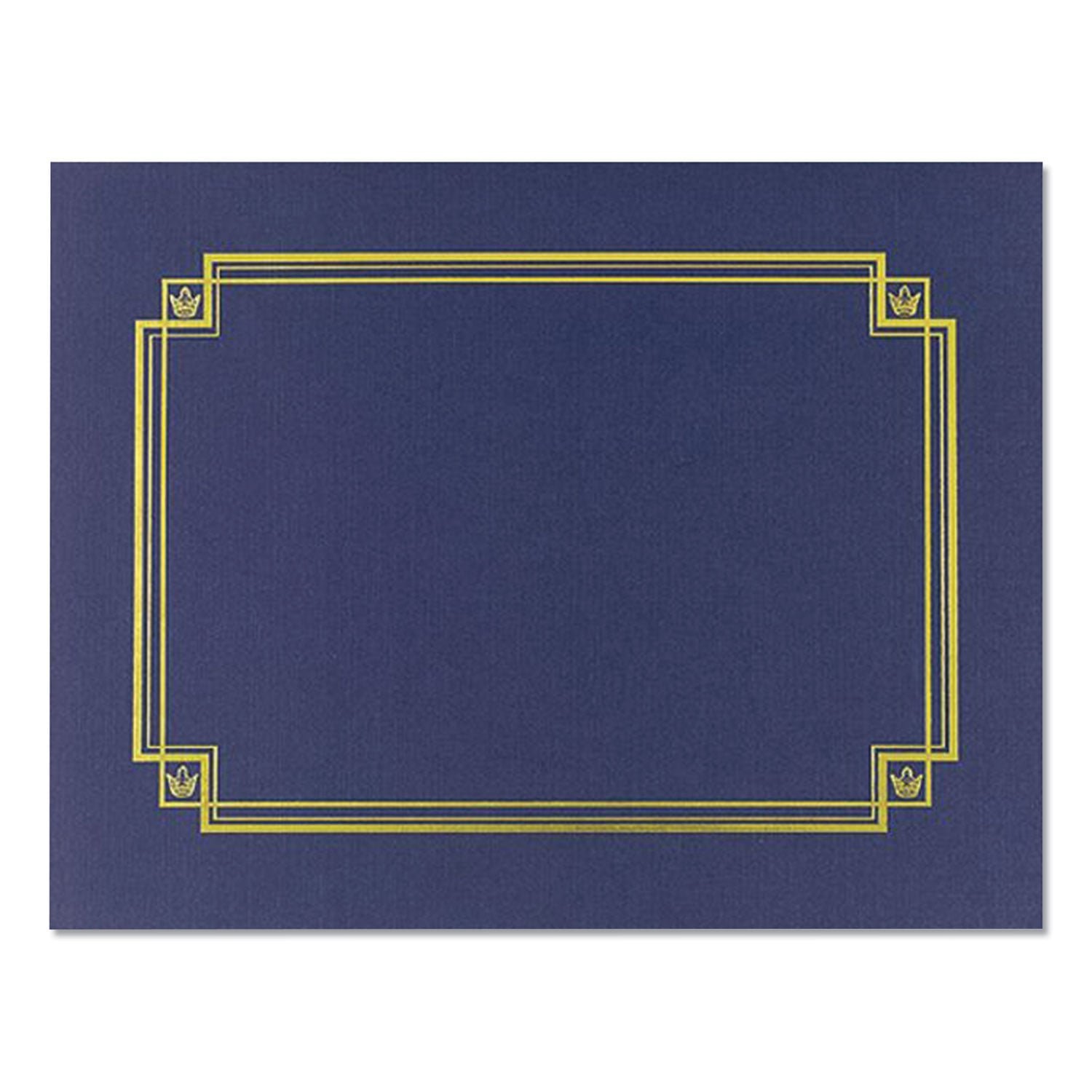 Perfect for any type of award or certificate, this holder features embossed gold foil. Cover is die-cut to hold any certificate and is acid- and lignin-free. Color(s): Navy; Width: 12.65″; Height: 9.75″; Insert Size: 11 x 8.5.
