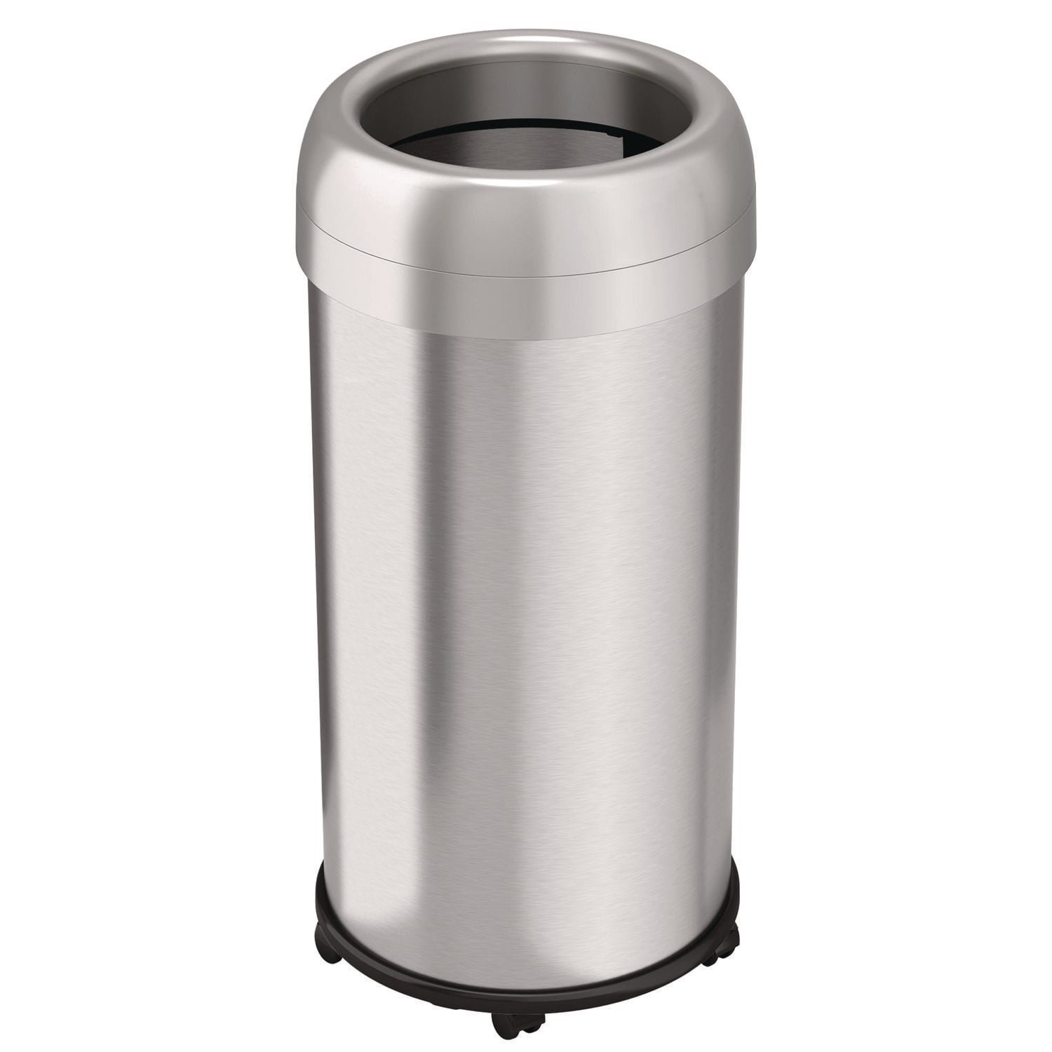 HLS Commercial Open Top Trash Can with Wheels, Round, 16 gal, Plastic/Stainless Steel, Silver (HLS16STRM)