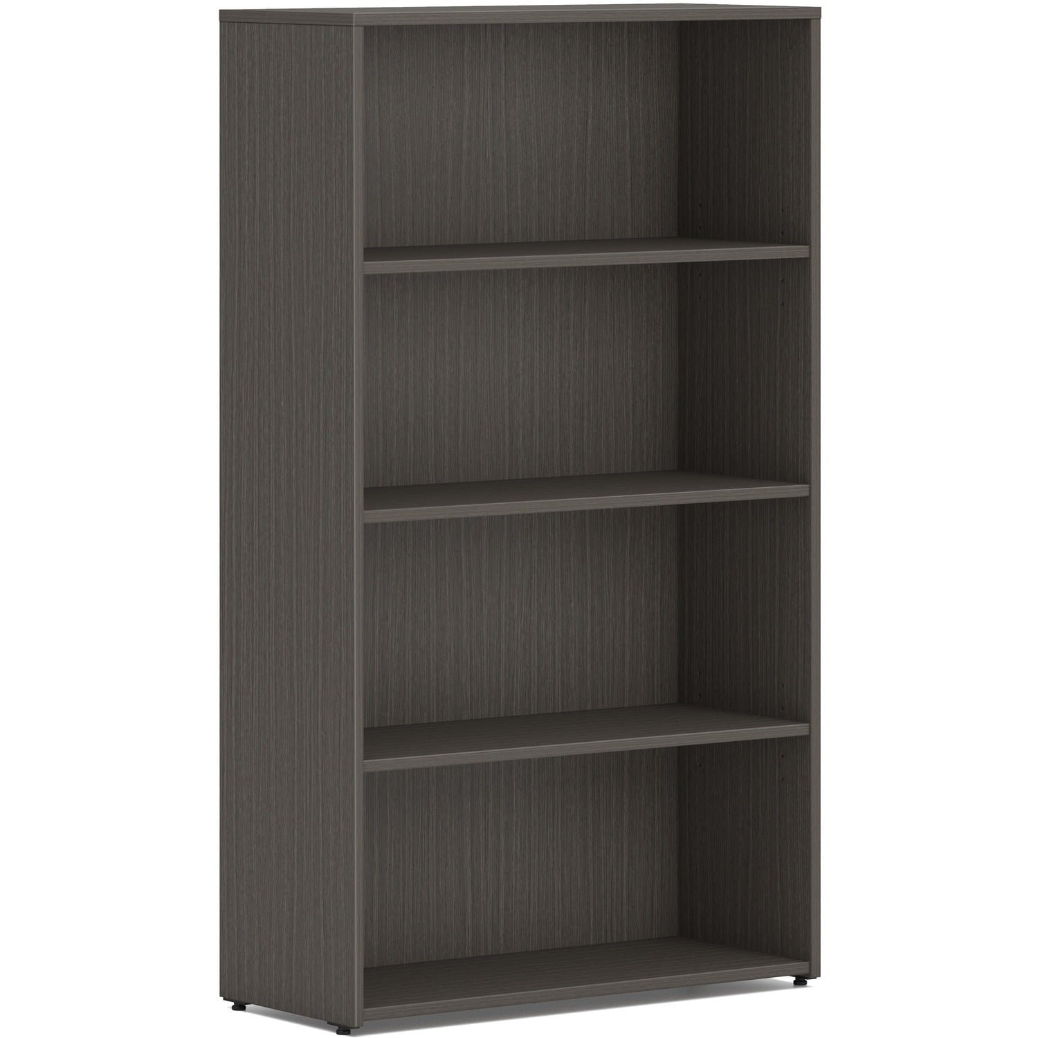This four-shelf bookcase is part of the HON Mod Desk Collection that delivers simplicity and adaptability to enhance your productivity. The contemporary design feels perfectly at home in either a private office or an open floor plan. The Mod bookcase is a perfect addition to any work environment. It lets you organize and display books, binders and work materials. Two of the four shelves are adjustable in 1″ increments, offering the flexibility to store taller binders. Durable, Slate Teak laminate is scratch-resistant, spill-resistant and stain-resistant. Slate Teak matches other Mod elements (sold separately) so you can create an office suite to fit your needs. More from the Manufacturer