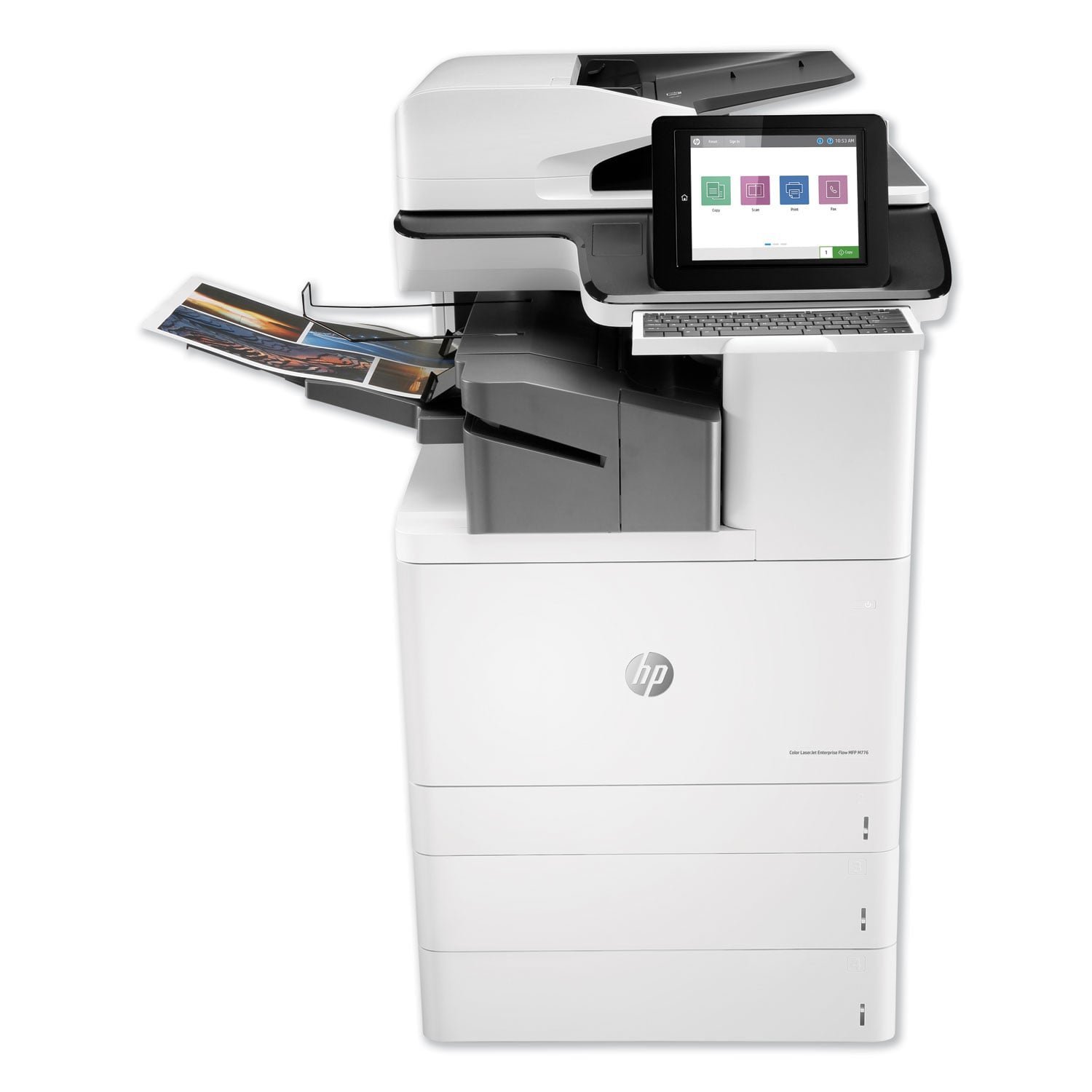 HP printers have the industrys strongest security because theyre always on guard, continually detecting and stopping threats. Expect brilliant color prints from advanced MFPs, equipped with Jet-Intelligence technology. Help workgroups capture every page easily and detect potential errors or missed pagesevery time. Offering the world’s most secure printing and a wide range of paper handling features, this is printing that helps save time and simplifies workflows. Color LaserJet Enterprise Flow MFP M776zs. Machine Functions: Copy; Fax; Print; Scan; Printing Type: Laser; Maximum Print Speed (Black): 45 ppm; Maximum Print Speed (Color): 45 ppm.