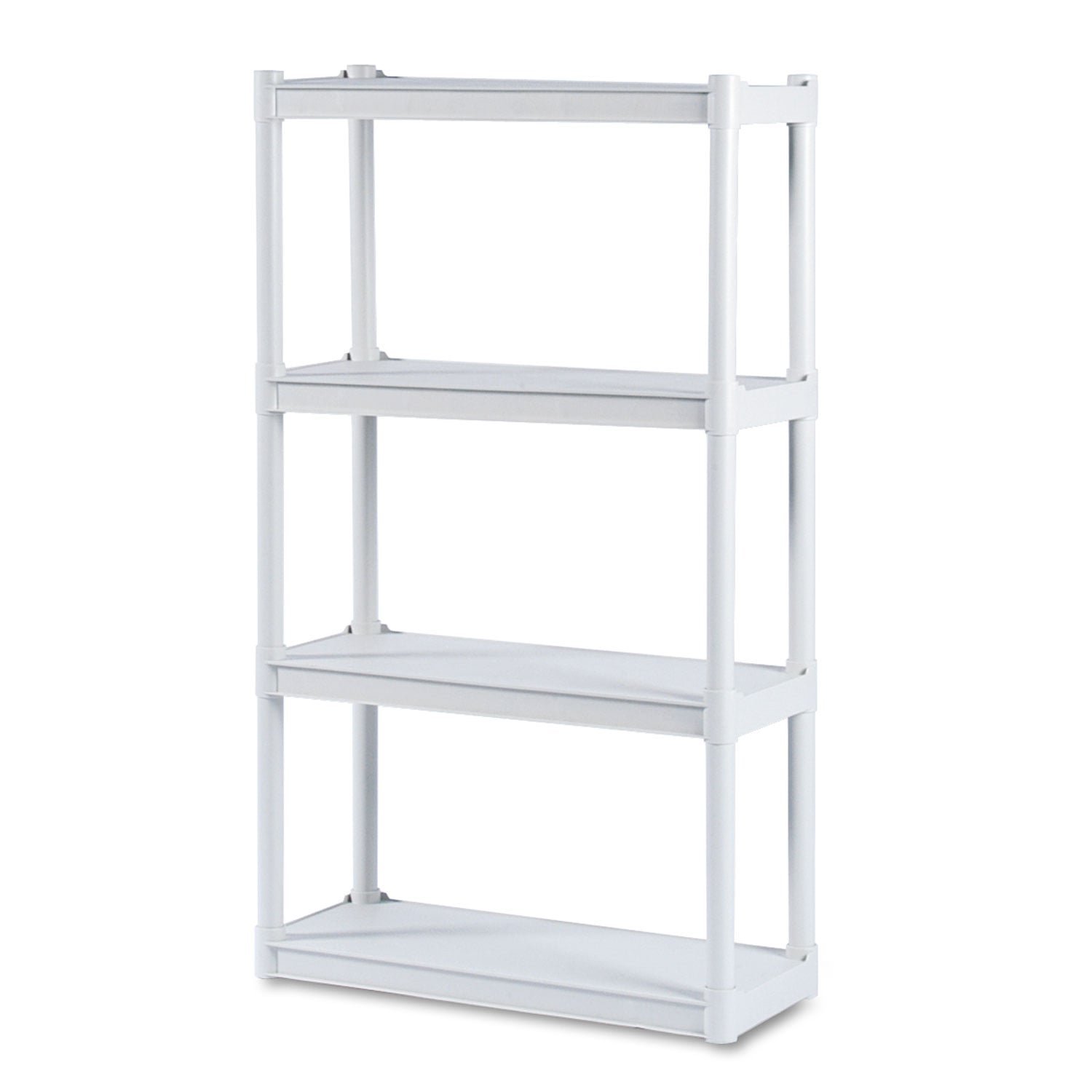 Ideal for any application, this heavy-duty, commercial grade shelving won’t scratch, dent or rust. Easy snap-together assembly in five minutes with 16″ clearance between shelves. Washable. Wall anchor included. Four-ShelfConstructed of injection-molded polypropylene. 15″ clearance between shelves. 75-lb capacity per shelf evenly distributed. Series Name: Iceberg Rough N Ready Series; Shelf Count: 4; Shelf Thickness: 2.13″; Shelf Capacity (Weight): 75 lbs.