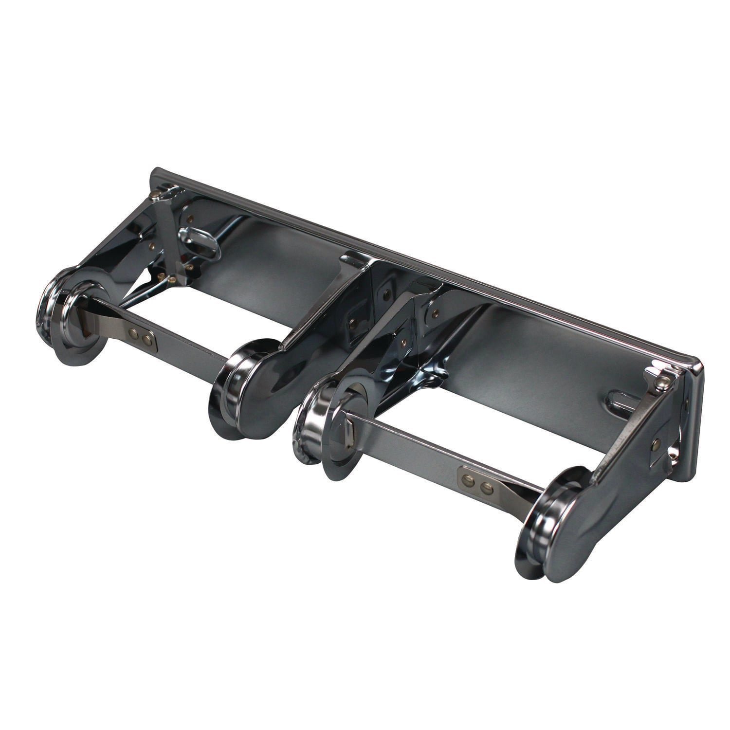 Self-locking mechanism prevents accidental release. The 4.5″ profile from the wall minimizes space needed for installation and operation. 18-gauge steel with chrome finish makes this dispenser extremely durable. For Roll Size: Up to 5″ dia; Roll Type: Standard; Capacity (text): Holds Two Rolls; Color(s): Chrome.