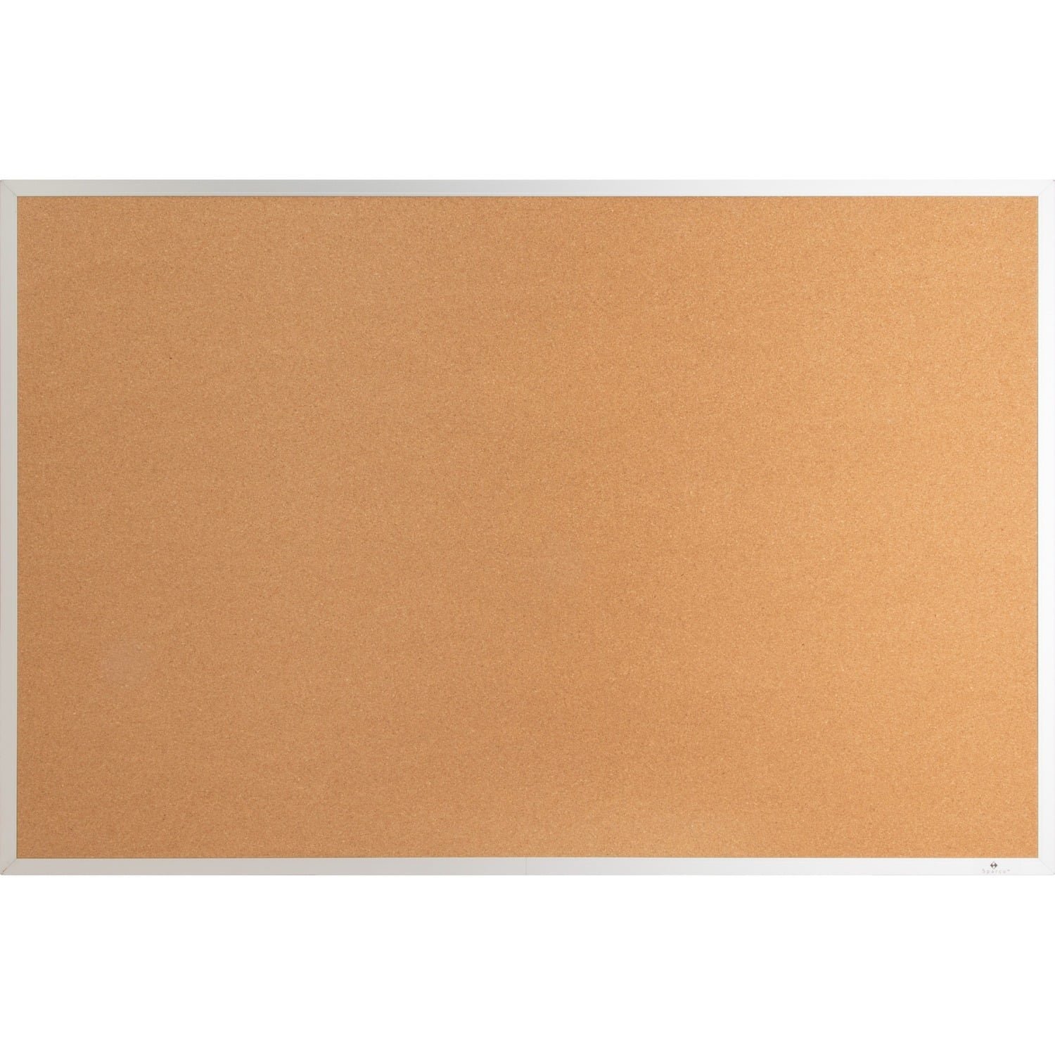 Corkboard features thick cork that is laminated to sturdy fiberboard with a sealed back. Design provides long-lasting service and prevents warping. Cork is 0.8mm thick with an 8.5mm backing. Pushpins and tacks penetrate easily and hold firmly. Corkboard has an aluminum frame and includes mounting hardware.