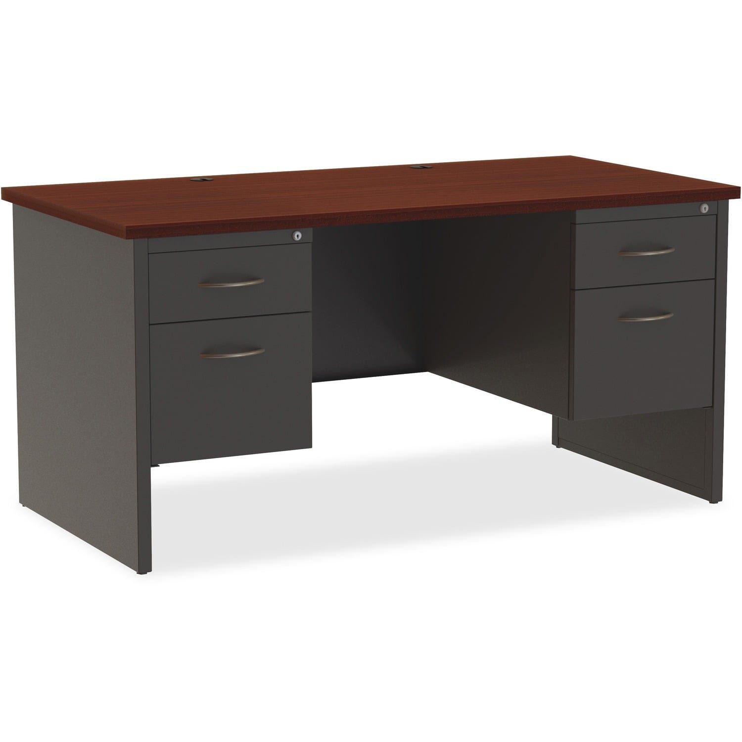 Lorell Fortress Modular Series Double-Pedestal Desk 60″ Width x 30″ Depth, x 1.1″ Thickness Top – 2 x Box, File Drawer(s) – Double Pedestal – Material: Steel – Finish: Mahogany…