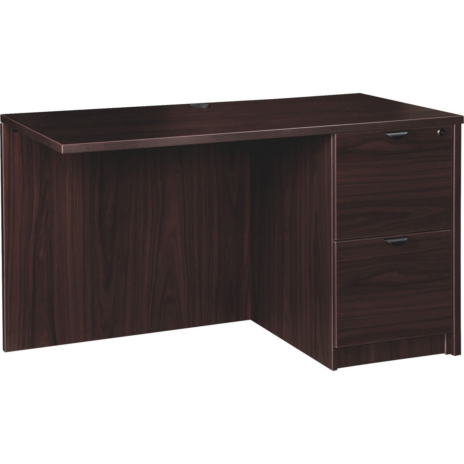 Right return is part of the elegant, Lorell Prominence 2.0 Series that is perfect for your executive office suites. It is not freestanding. Pair with left-pedestal desks and credenzas to create L-shaped and U-shaped configurations. Durable, Espresso laminate surface is mar-resistant, burn-resistant and impact-resistant to withstand hectic, daily work life. The 1″ thick top with matching 3mm edgebanding is made with 45 lb. density particleboard and finished on both sides with high-performance, thermally fused melamine. Return features a full modesty panel for privacy and a full pedestal with two locking file drawers to secure important files. File drawers hold letter-size or legal-size hanging files with included hangrails and have 100 lb. full-suspension, ball-bearing slides. The 3/4″ adjustable glides allow return to remain level on uneven surfaces. Grommet in the top worksurface allows convenient cord management. Return ships fully assembled so it’s ready for immediate use.