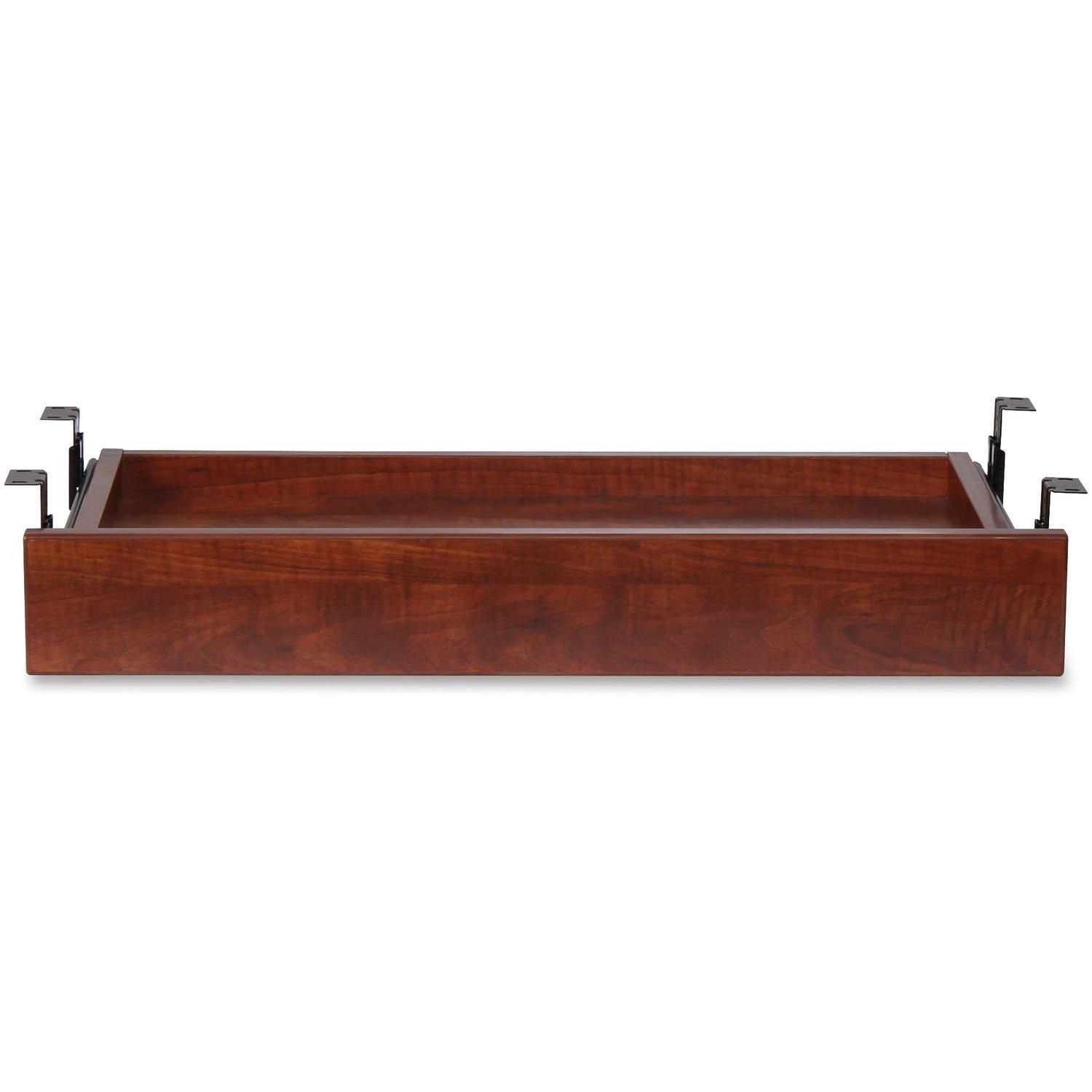 Universal center drawer can be easily attached to desks in the Lorell Essential Series and most other desks with an adjustable mount. Drawer slides under the desk and out for easy access. Drawer features a durable laminate surface.