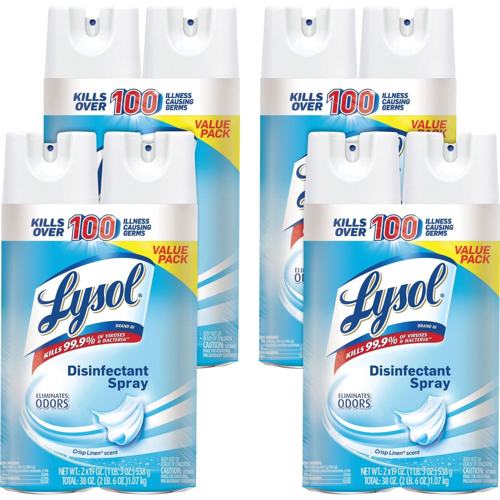 Lysol® Disinfectant Spray, Crisp Linen Scent, 19 oz., 8 Cans (99608CT)