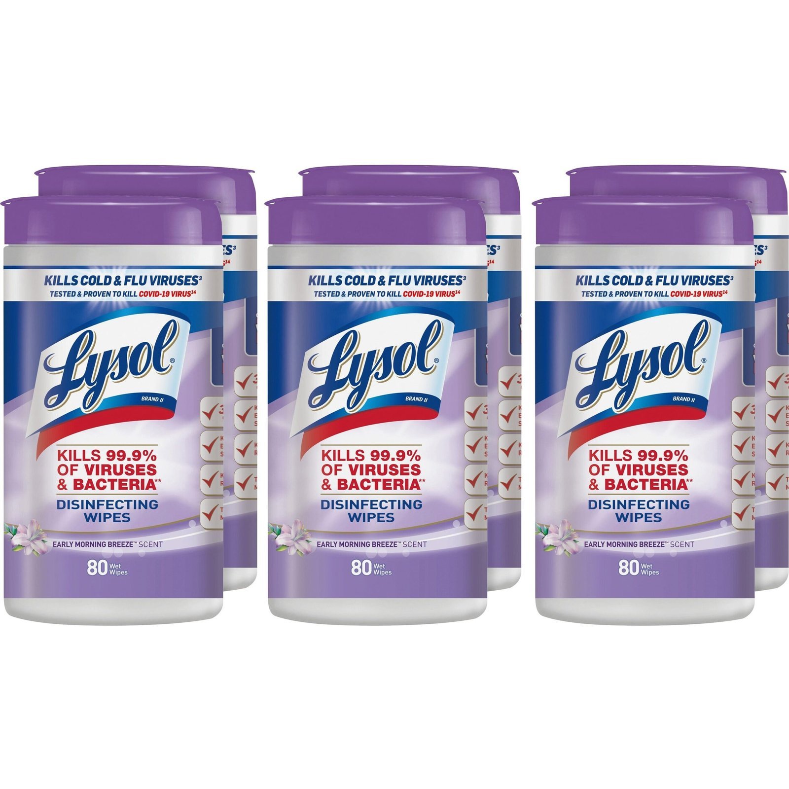 Lysol® Disinfecting Wipes, Early Morning Breeze, 80 Wipes, 6 Canisters (89347CT)
