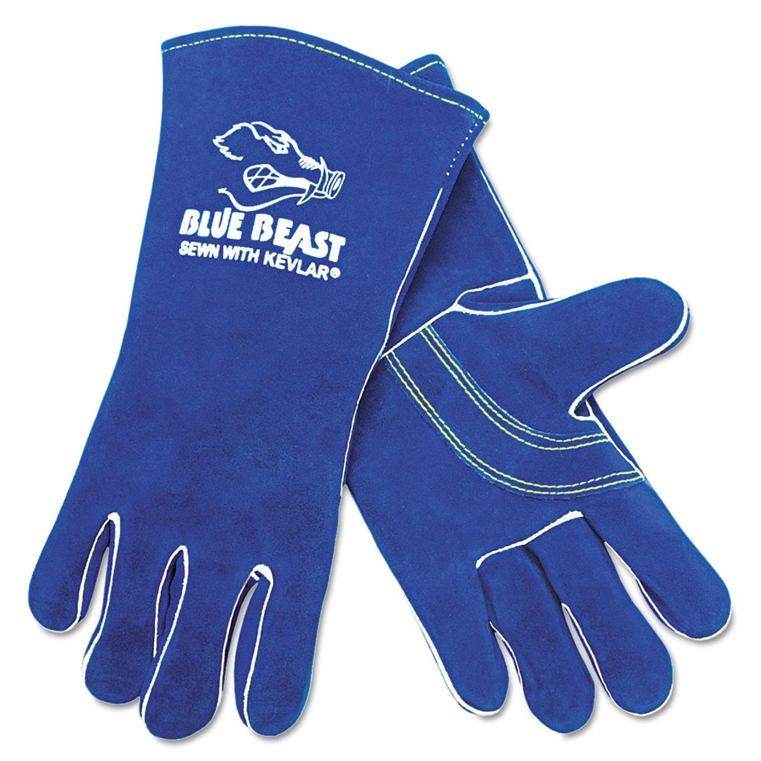 Full 100% cotton sock lining, in-sewn at all finger tips. All seams FULLY welted for durability. Turned leather hems. Extra-large die cut. All premium welders sewn with super-strong, heat-resistant DuPont KEVLAR thread. Style: Welding; Wrist Style: Gauntlet; Material(s): Leather; Cotton; Kevlar; Thumb Style: Wing.