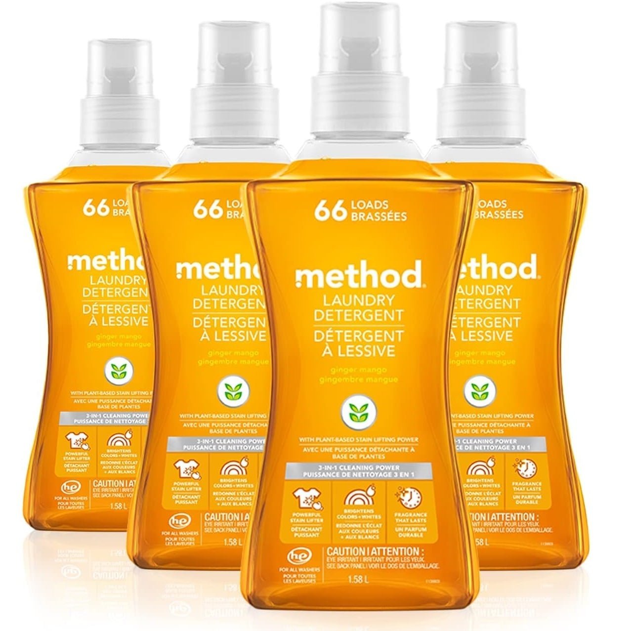 Method 4X Concentrated Laundry Detergent, Ginger Mango, 53.5 oz Bottle, 4/Carton (01490)