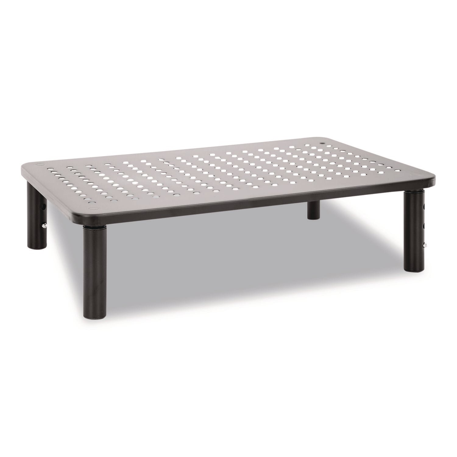 Create a more ergonomic workspace with the MOUNT-IT! Adjustable Desktop Monitor Riser. This slim and lightweight yet sturdy and durable metal stand elevates your monitor or laptop for more comfortable use and viewing. Three adjustable height settings make it easy to find your optimal view angle. Open-format base allows you to store papers, files and office essentials below to help you create a clutter-free desk space. All four legs feature protective silicone pads to keep your worksurface scratch-free. OEM/Compatible: Compatible; Workstation Type: Traditional Desk/Table; Width (Max): 14.57″; Depth (Max): 9.25″.
